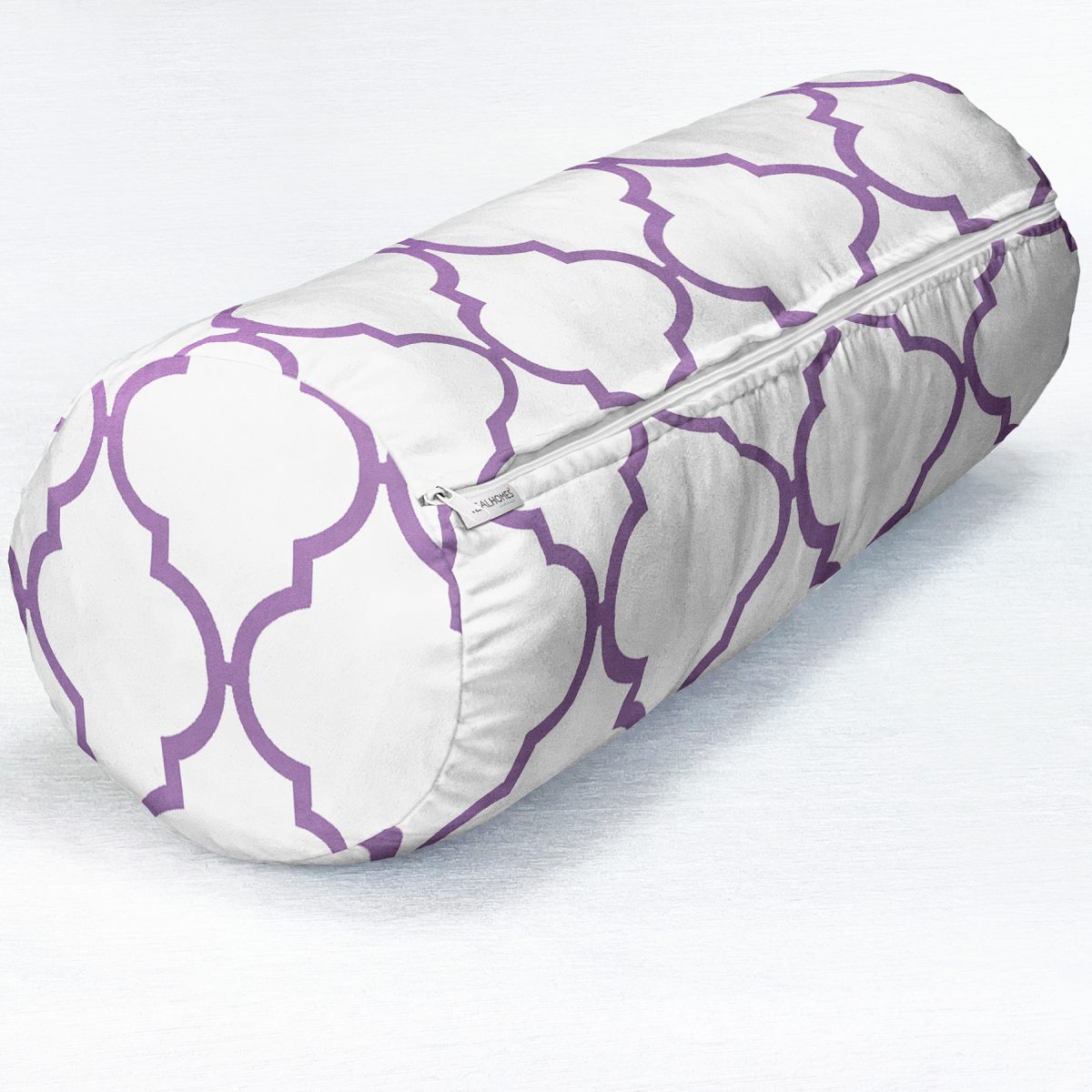Mor Renkli Ogea Desenli Dijital Baskılı Modern İç Dolgulu – Fermuarlı Süet Silindir Rulo Yastık Kırlent