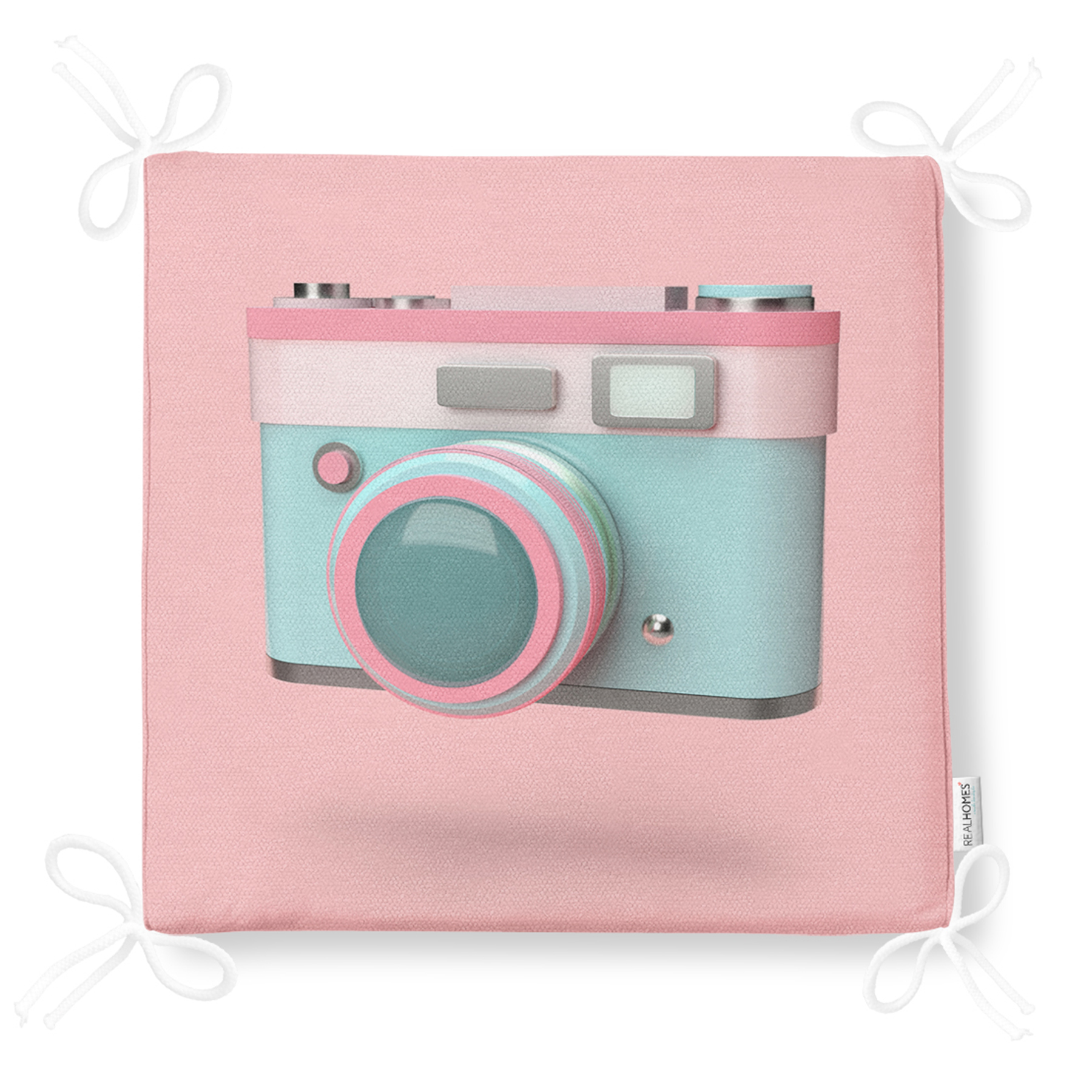 Nostaljik Fotoğraf Makinası 3D Dijital Baskılı Fermuarlı Sandalye Minderi Realhomes