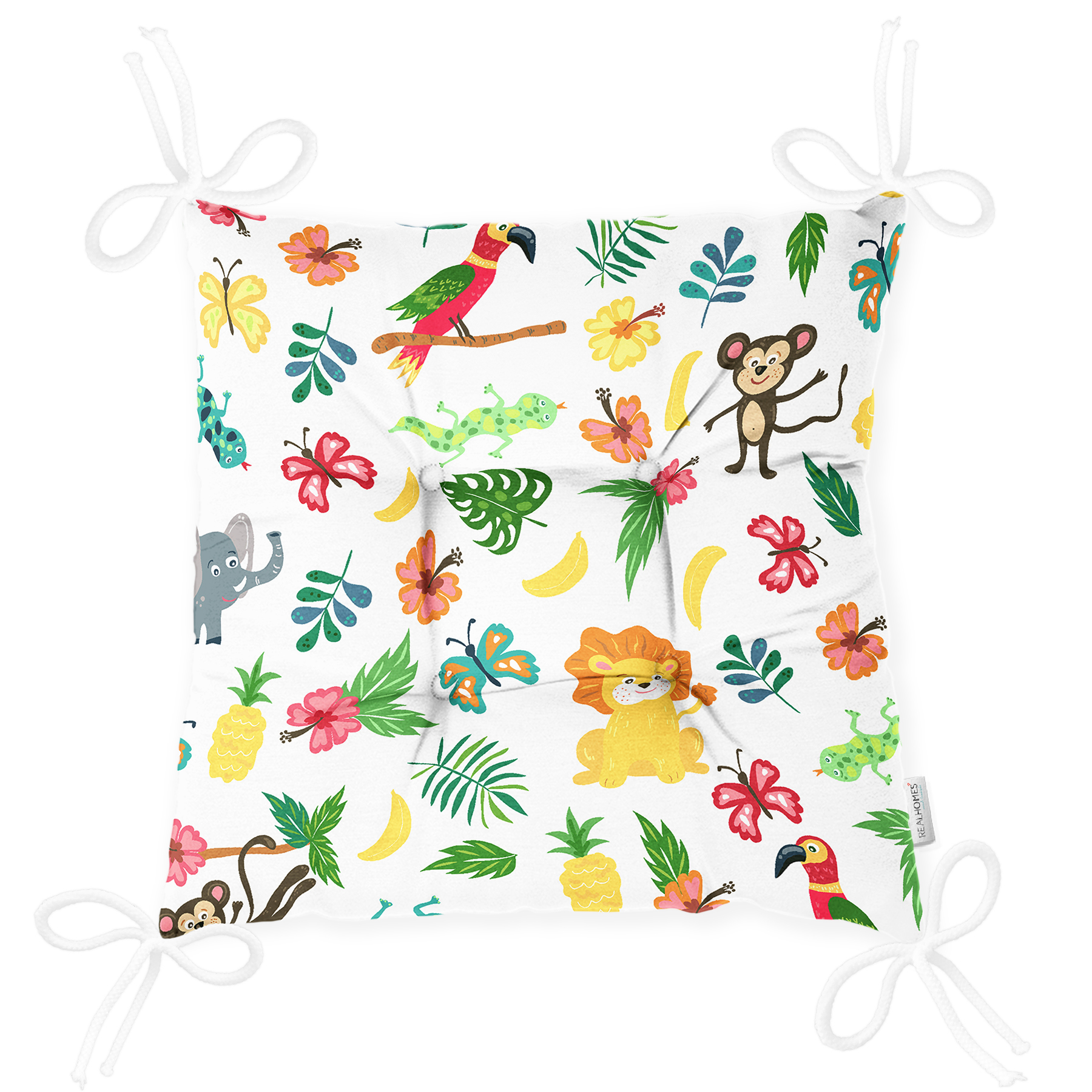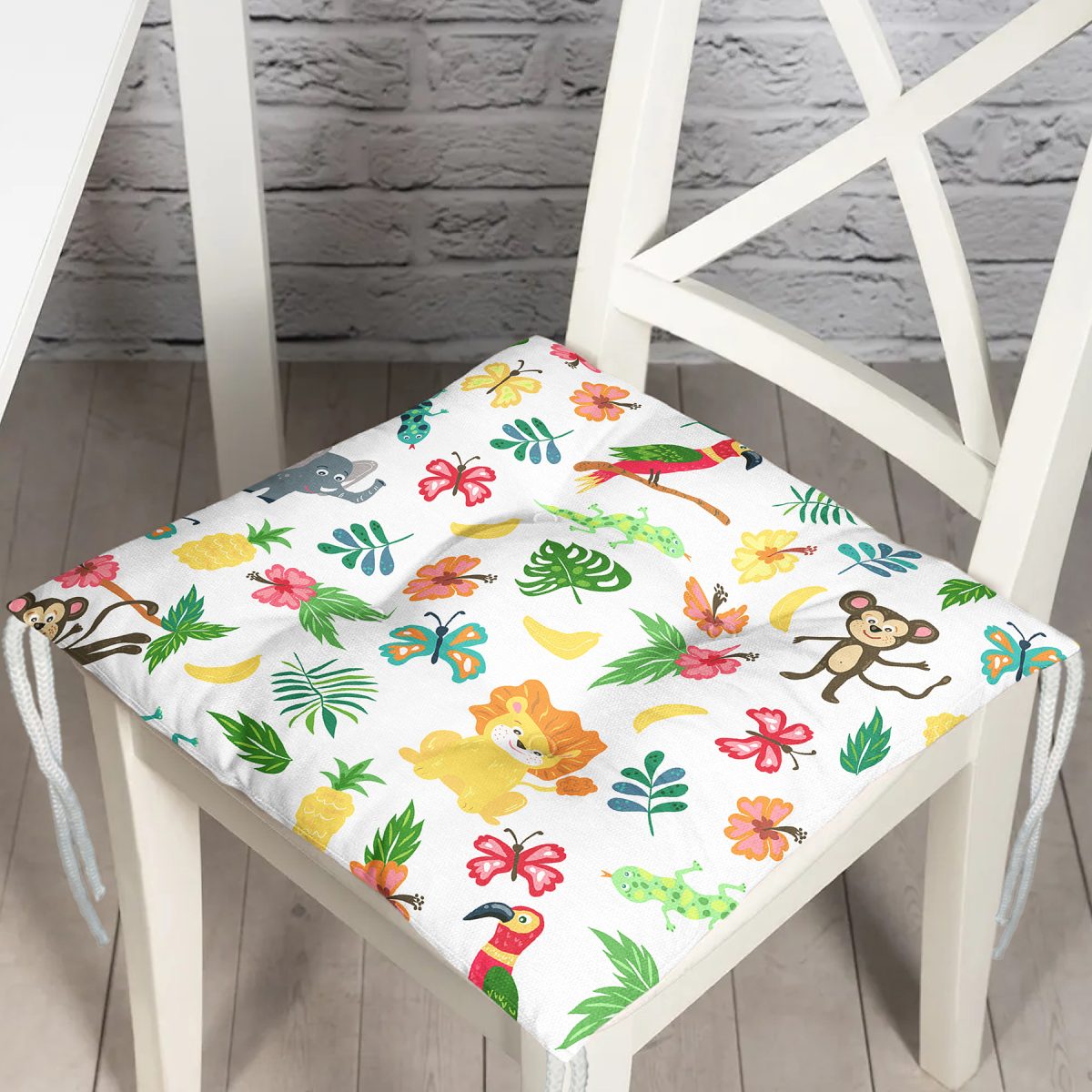 Orman Temalı Sevimli Hayvanlar Desenli Dijital Baskılı Özel Tasarım Modern Pofuduk Sandalye Minderi Realhomes