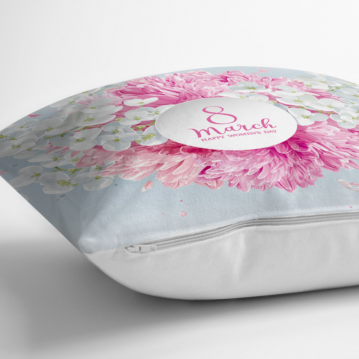 Özel Tasarım 8 March Ortanca Çiçeği Motifli Dijital Baskılı Modern Yastık Kırlent Kılıfı Realhomes