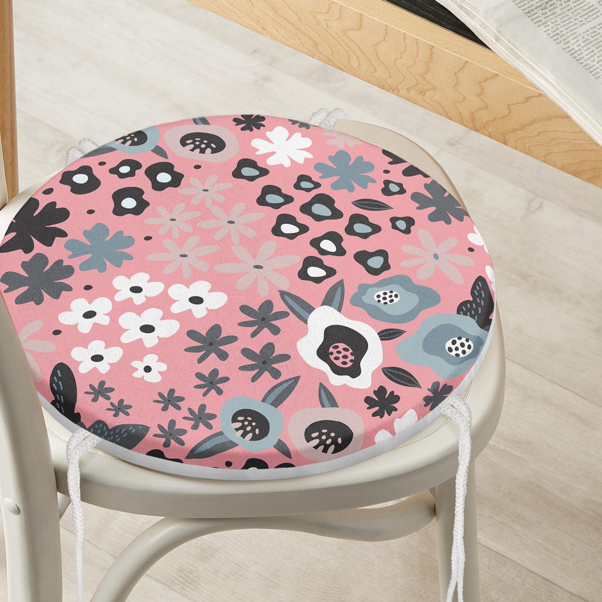 Özel Tasarım Çiçek Yaprakları Dijital Baskılı Yuvarlak Fermuarlı Sandalye Minderi