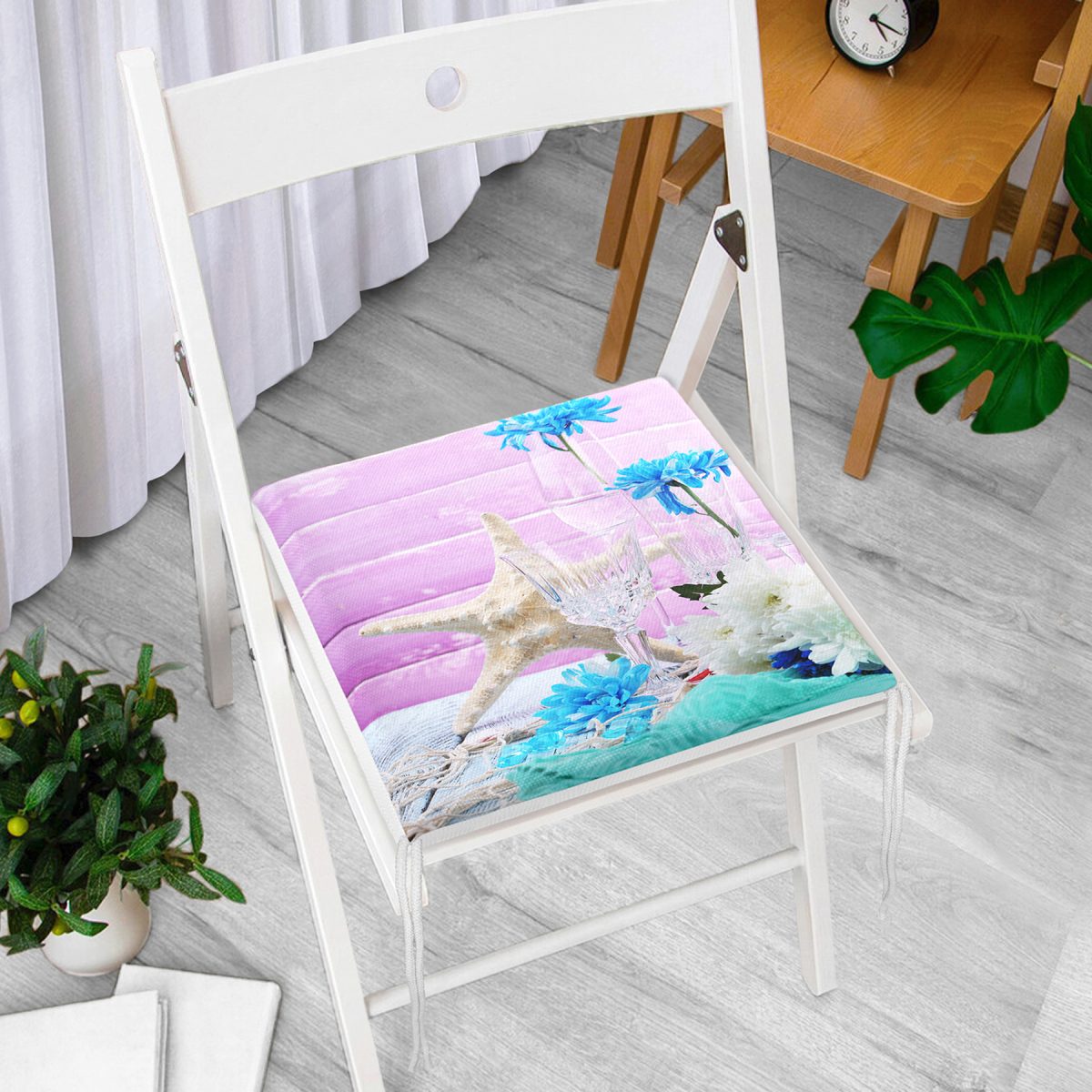 Özel Tasarım Deniz Yıldızı Motifli Dijital Baskılı Modern Fermuarlı Sandalye Minderi