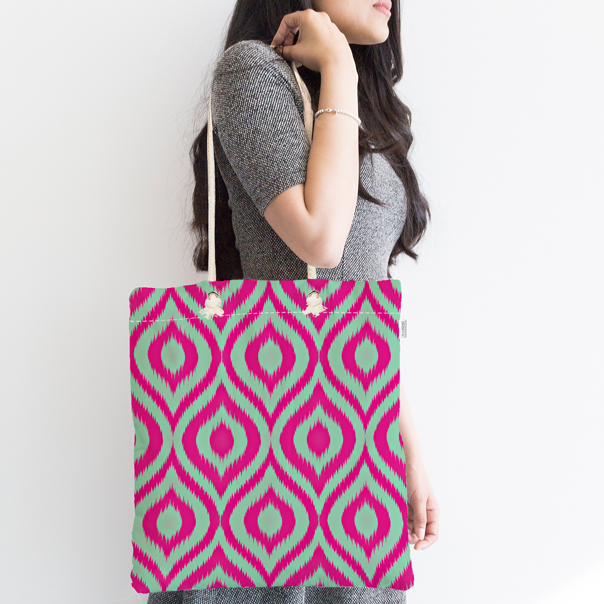 Özel Tasarım Gri Zeminde Fuşya İkat Desenli Dijital Baskılı Kumaş Plaj Çantası Realhomes
