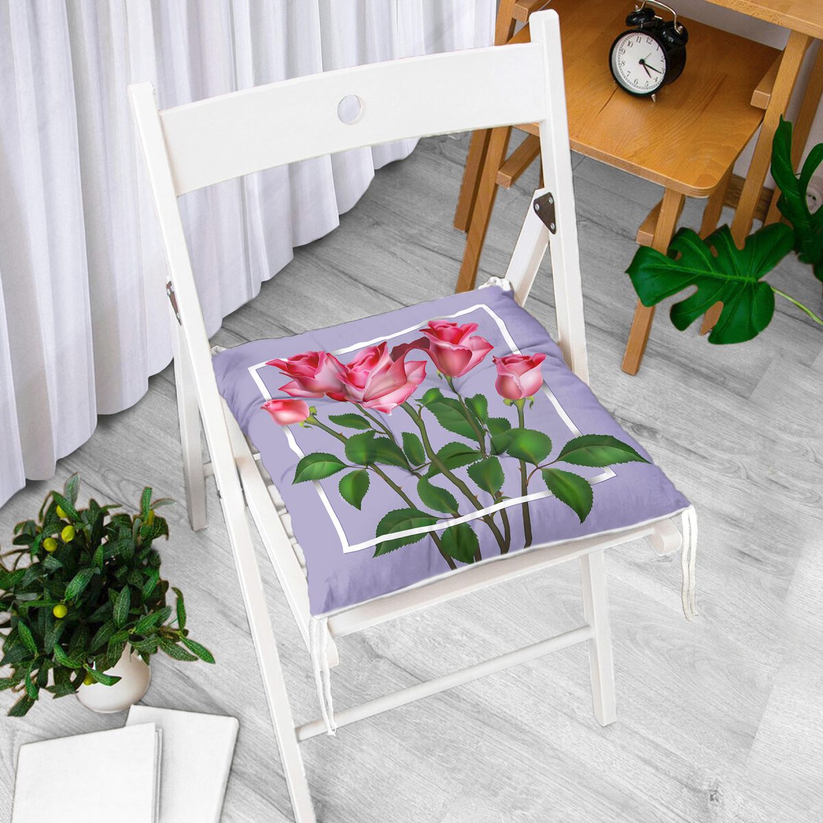 Özel Tasarım Gül Tasarımlı Dijital Baskılı Modern Pofuduk Sandalye Minderi
