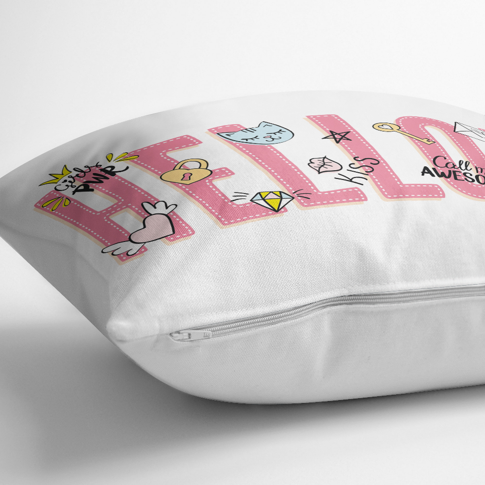 Özel Tasarım Hello Yazı Desenli Dijital Baskılı Kırlent Kılıfı