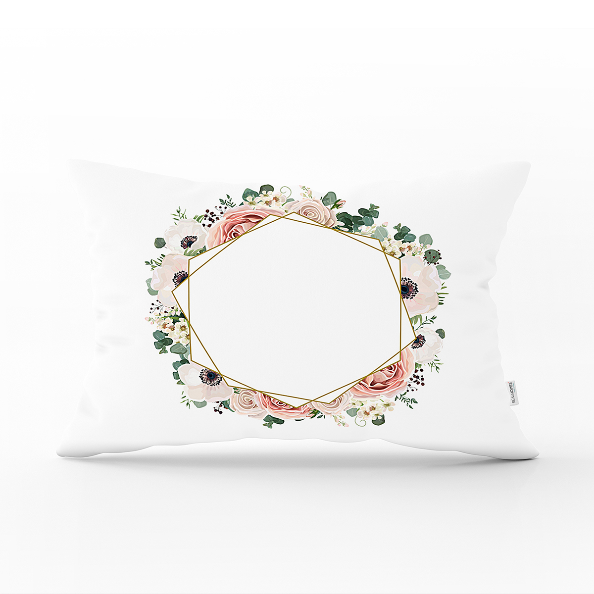 Özel Tasarım İsimli Çiçek Desenli Dijital Baskılı Dikdörtgen Kırlent Kılıfı