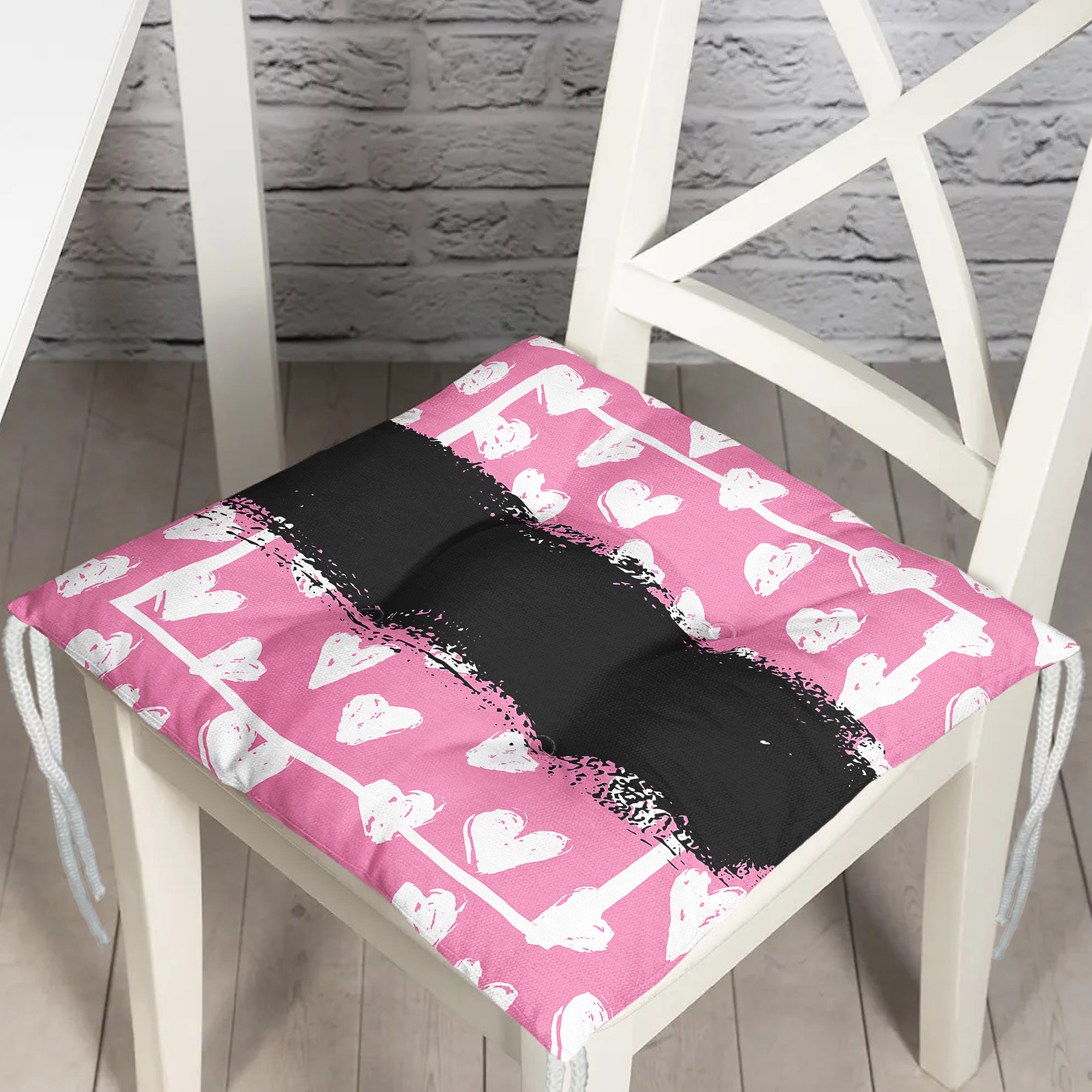 Özel Tasarım Kalp Motifli Dijital Baskılı Modern Pofuduk Sandalye Minderi