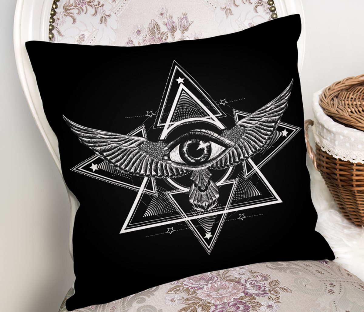 Özel Tasarım Kanatlı Üçüncü Göz Motifli Dijital Baskılı Kırlent Kılıfı