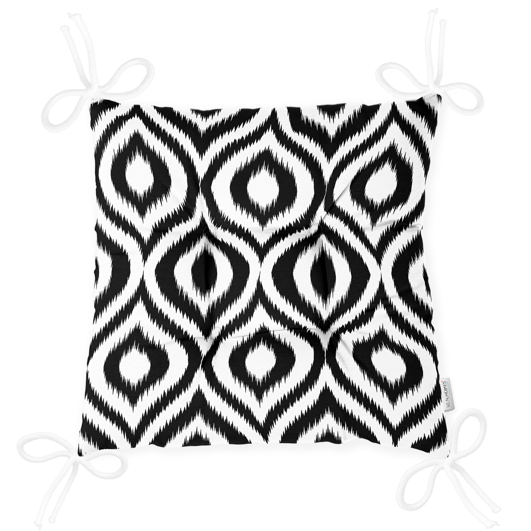 Özel Tasarım Siyah İkat Desenli Dijital Baskılı Pofuduk Sandalye Minderi Realhomes