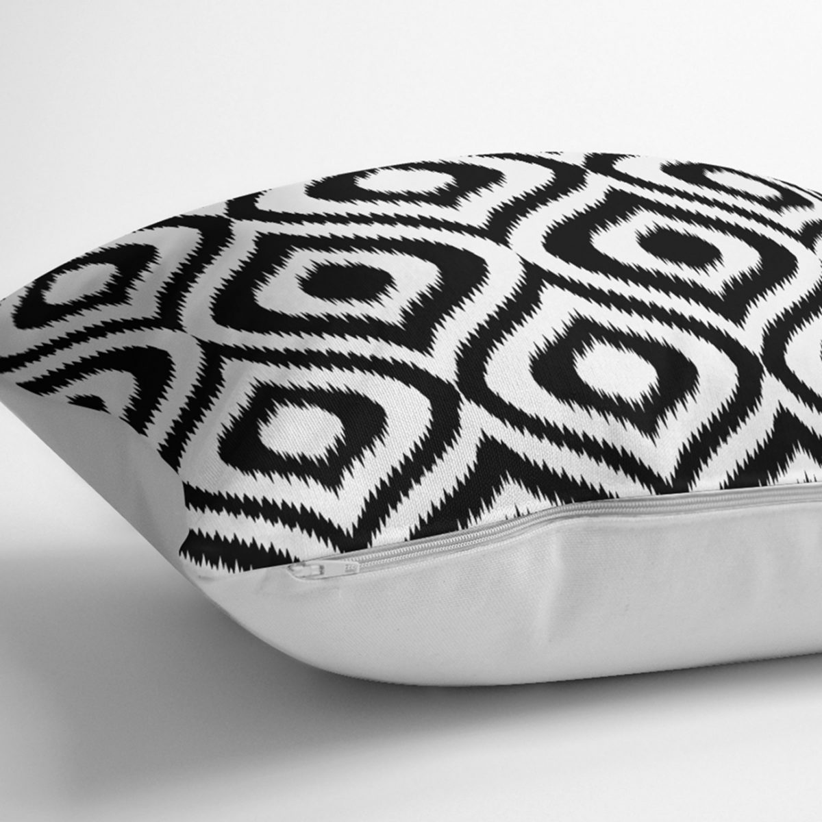 Özel Tasarım Siyah İkat Desenli Dijital Baskılı Yastık Kırlent Kılıfı Realhomes