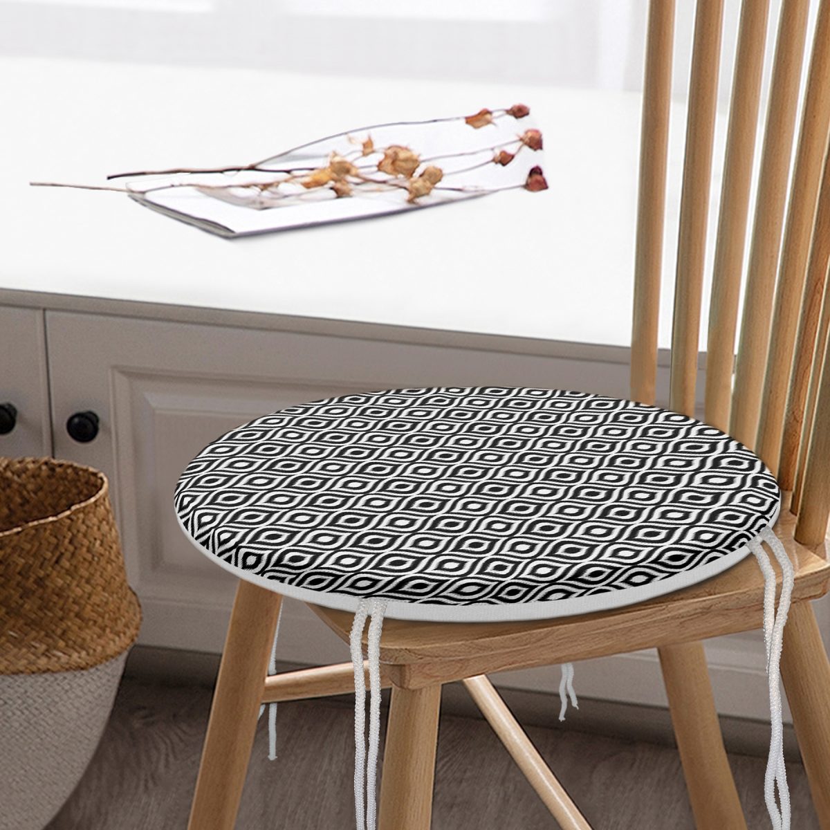 Özel Tasarım Siyah İkat Desenli Dijital Baskılı Yuvarlak Fermuarlı Sandalye Minderi