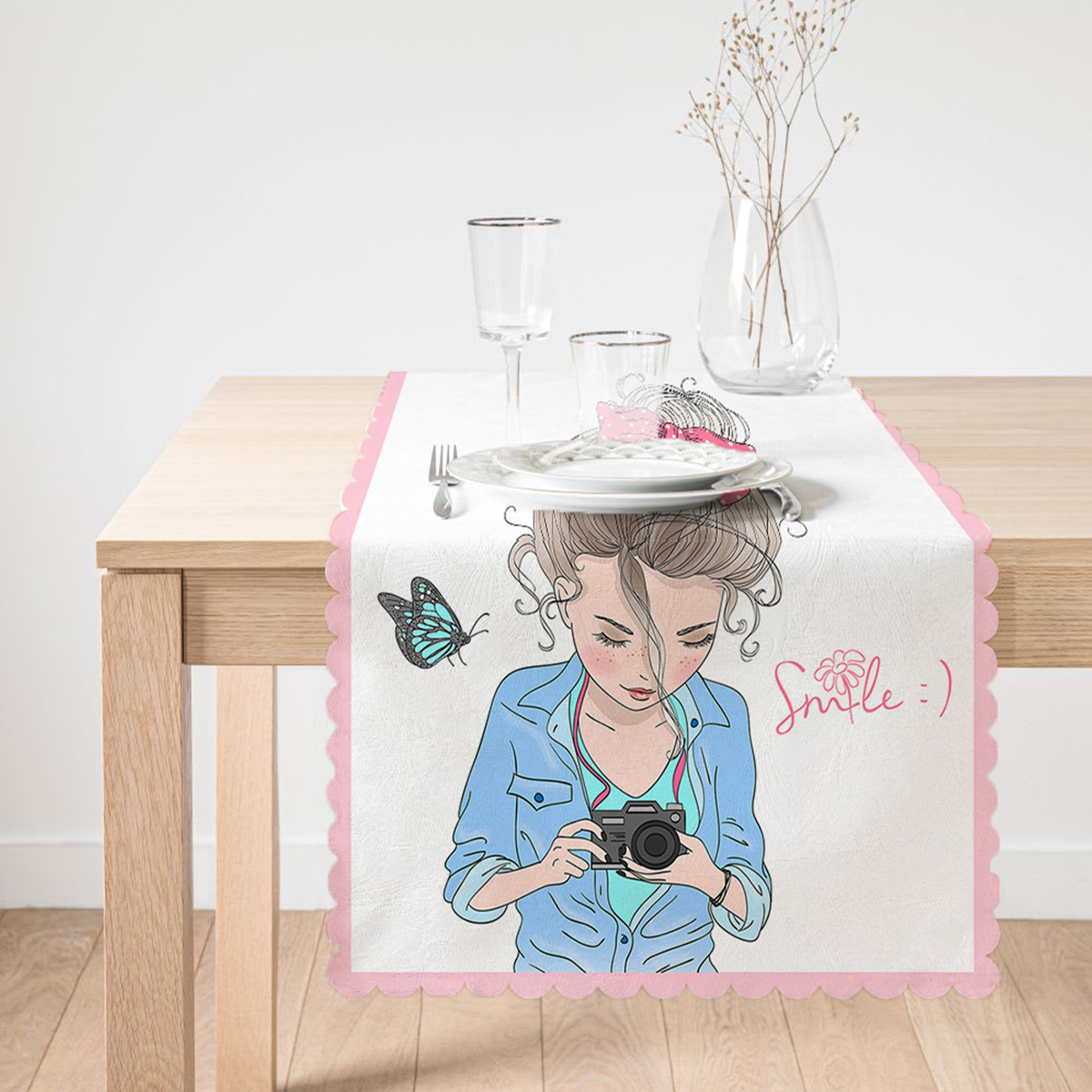 Özel Tasarım Smile Take Up Desenli Dekoratif Özel Tasarım Runner