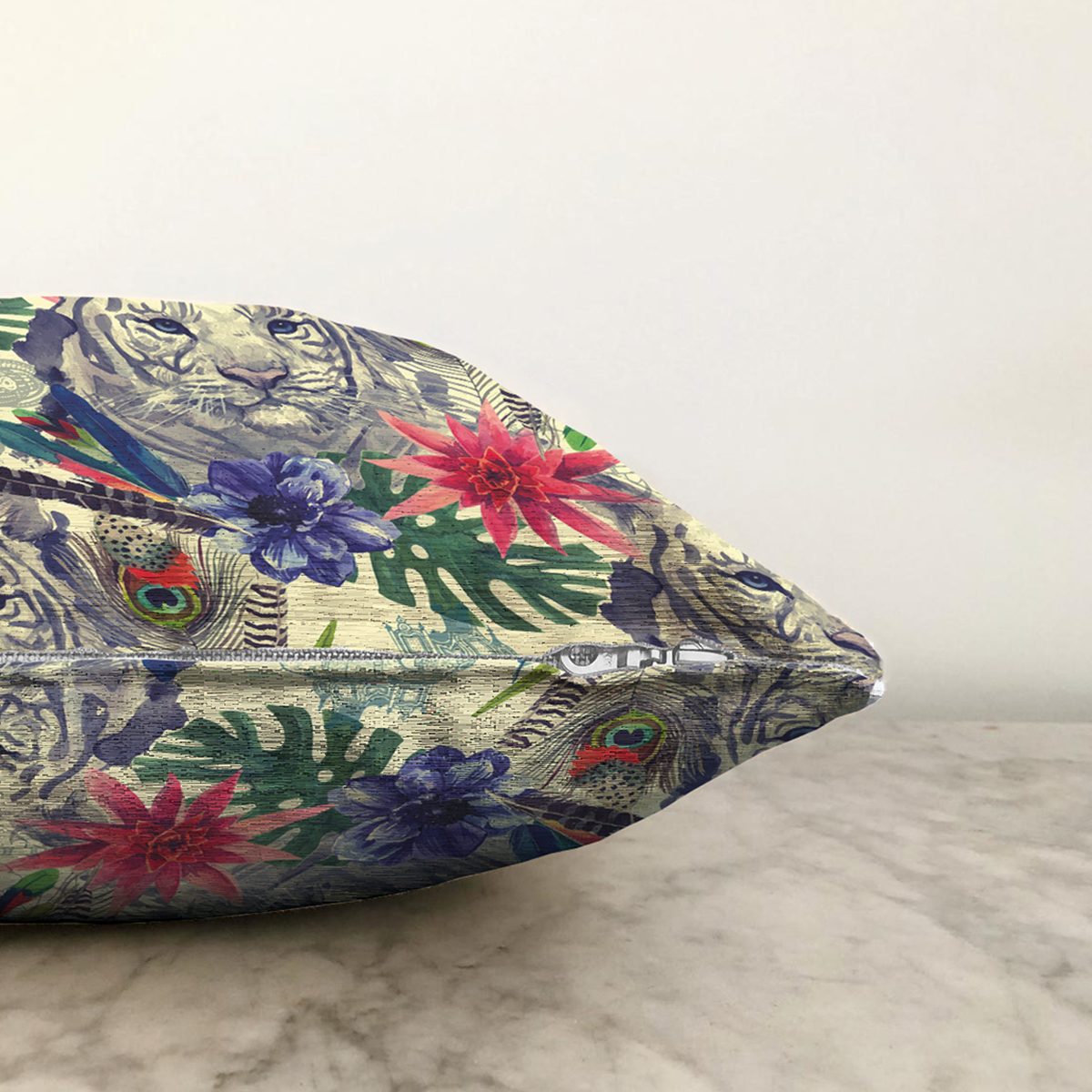 Özel Tasarım Suluboya Amazon Desenli Dijital Baskılı Raşel Kadife Yastık Kırlent Kılıfı