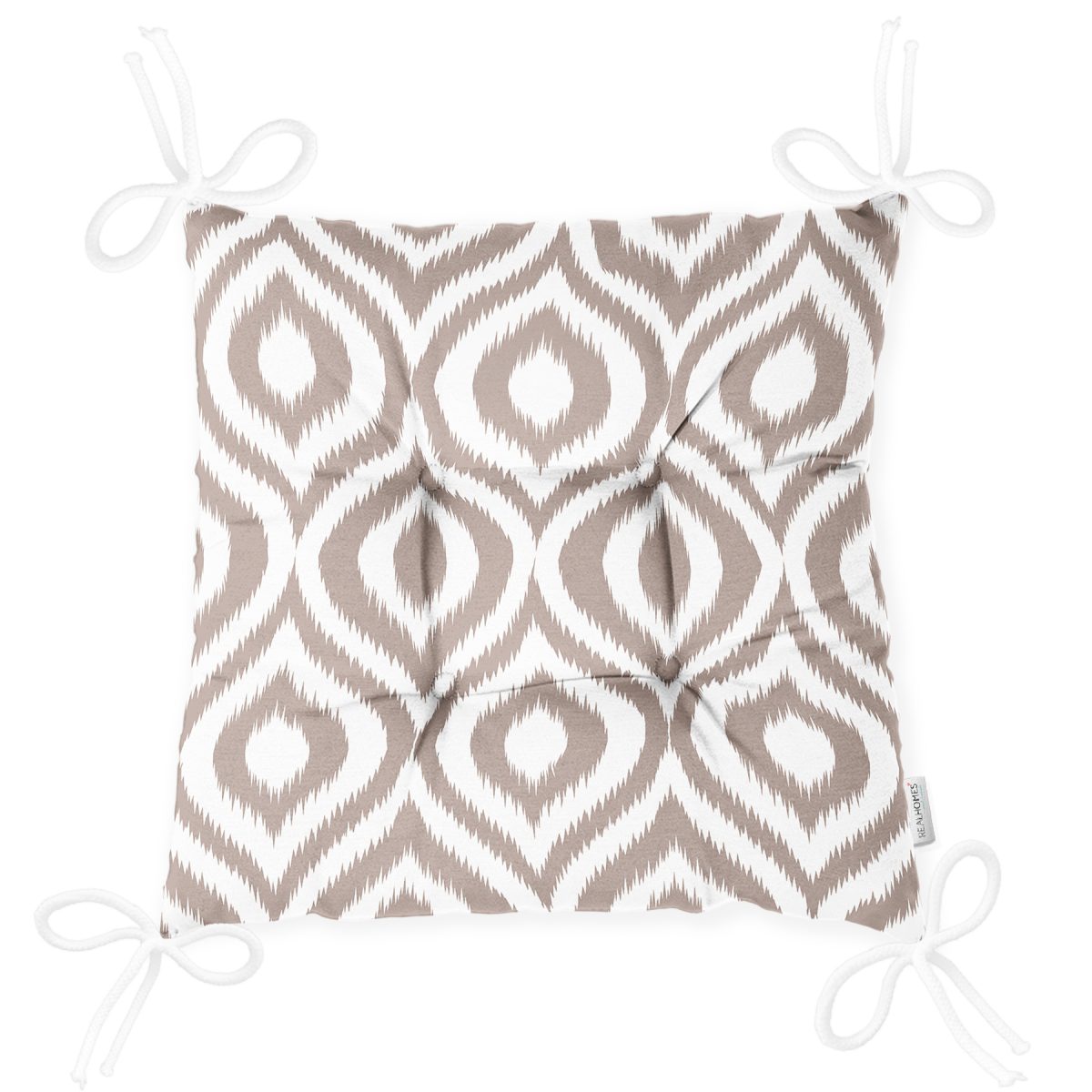 Özel Tasarım Vizon İkat Desenli Dijital Baskılı Pofuduk Sandalye Minderi