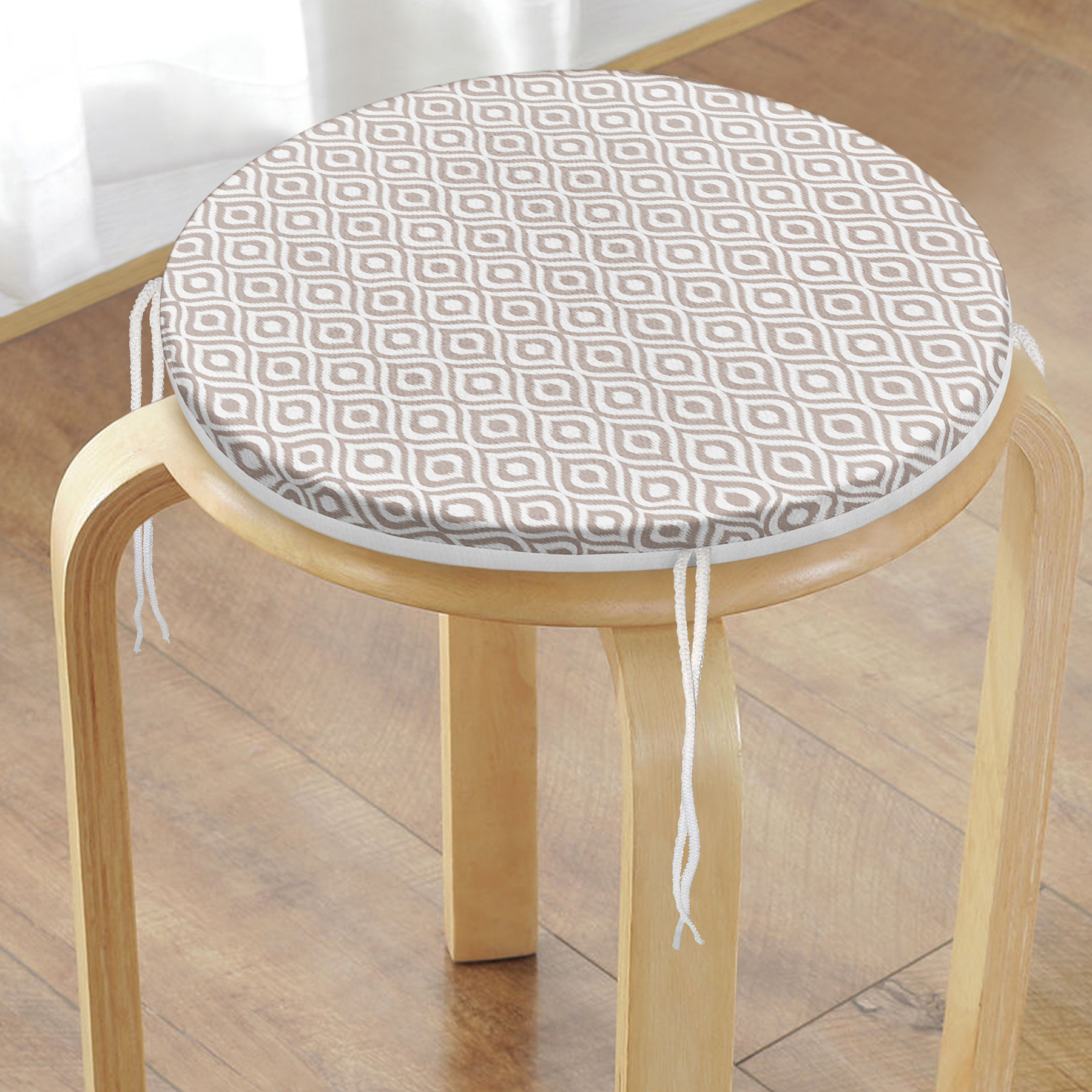 Özel Tasarım Vizon İkat Desenli Dijital Baskılı Yuvarlak Fermuarlı Sandalye Minderi