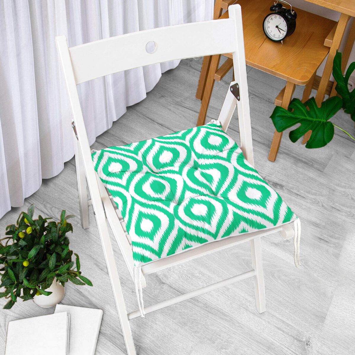 Özel Tasarım Yaşil İkat Desenli Dijital Baskılı Pofuduk Sandalye Minderi Realhomes