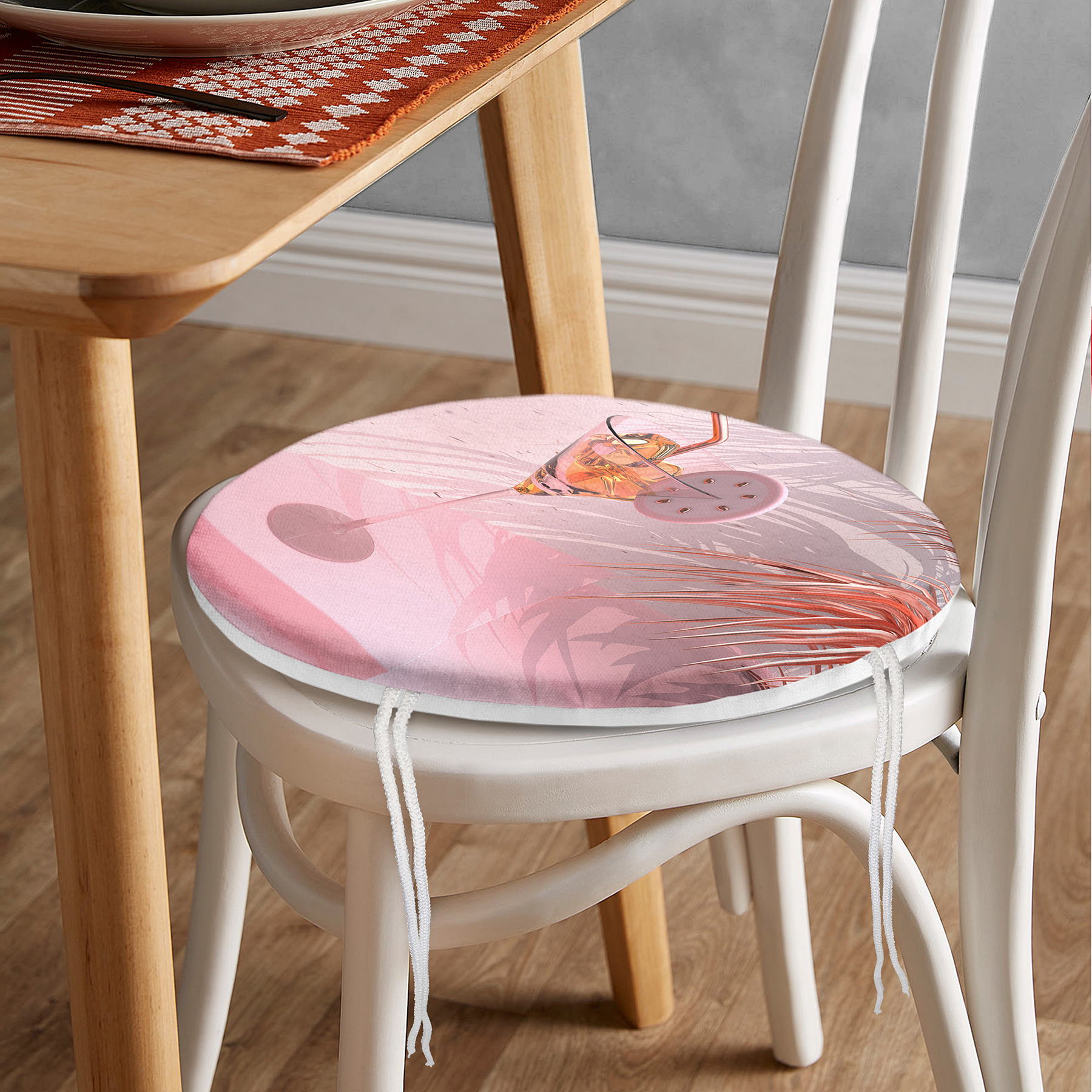 Palmiye ve Kadeh Resimli Dijital Baskılı Yuvarlak Fermuarlı Sandalye Minderi Realhomes