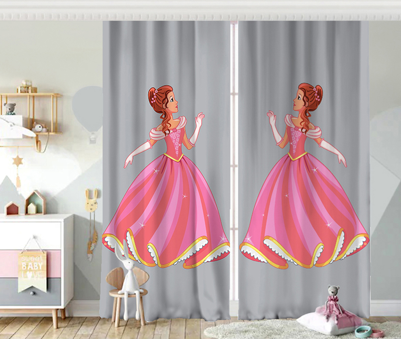 Pamuk Prenses Çizgifilm Desenli 3D Çocuk Odası Fon Perde