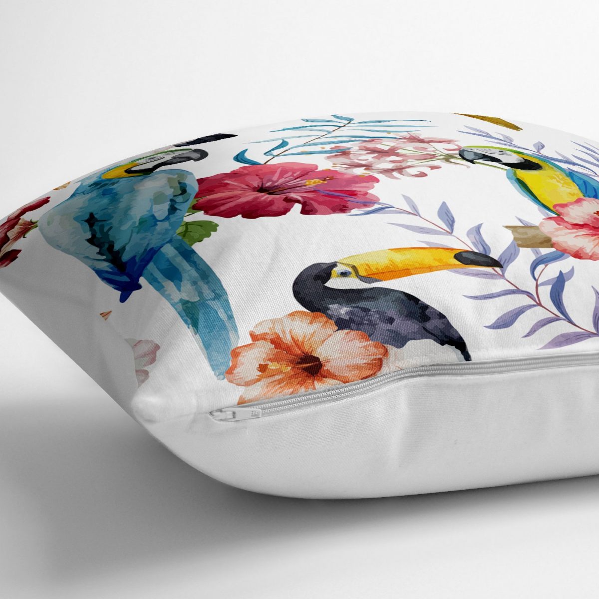 Papağan Desenli Dijital Baskılı Yer Minderi – 70 x 70 cm