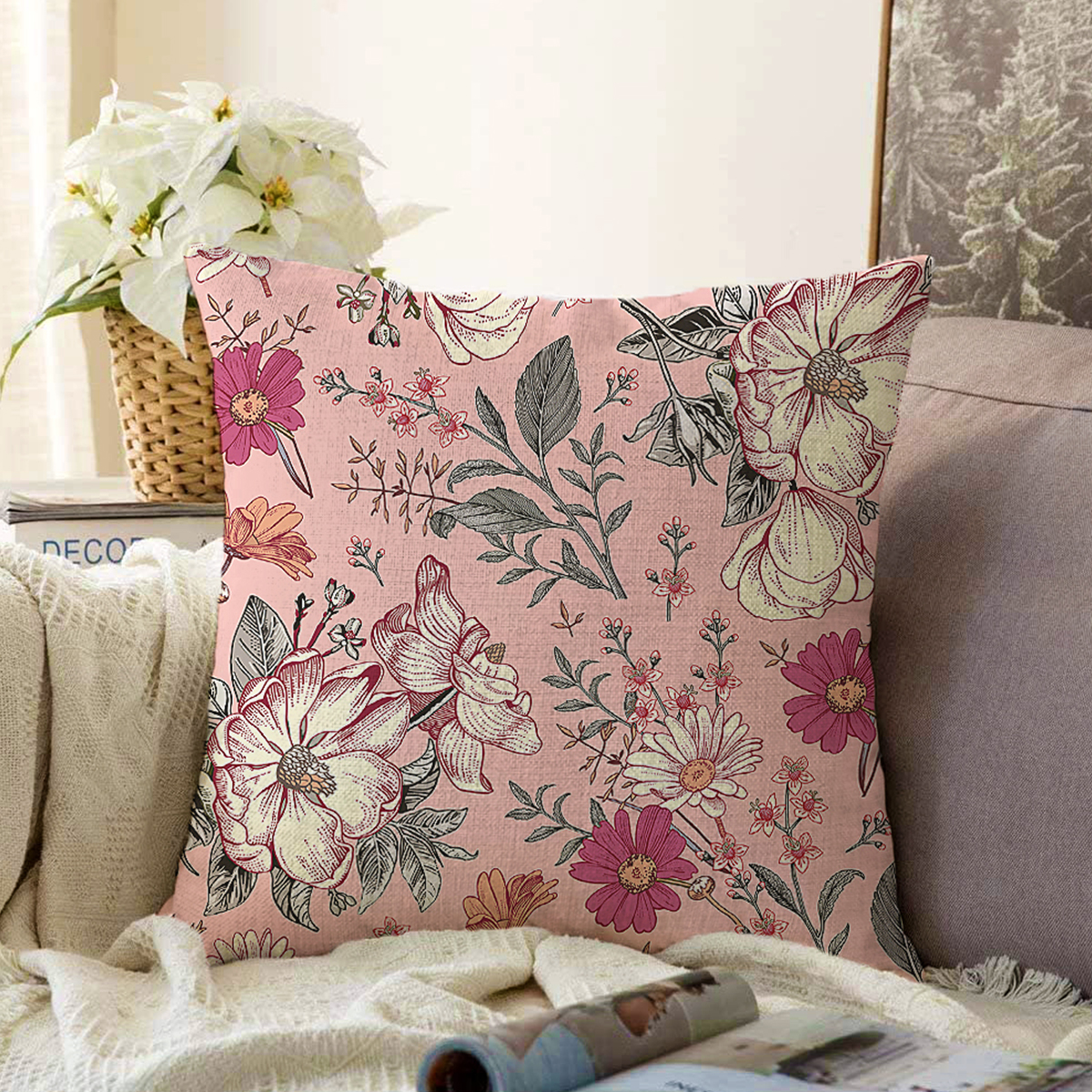 Papatya & Gül Tasarımlı Dijital Baskılı Dekoratif Raşel Kadife Yastık Kırlent Kılıfı