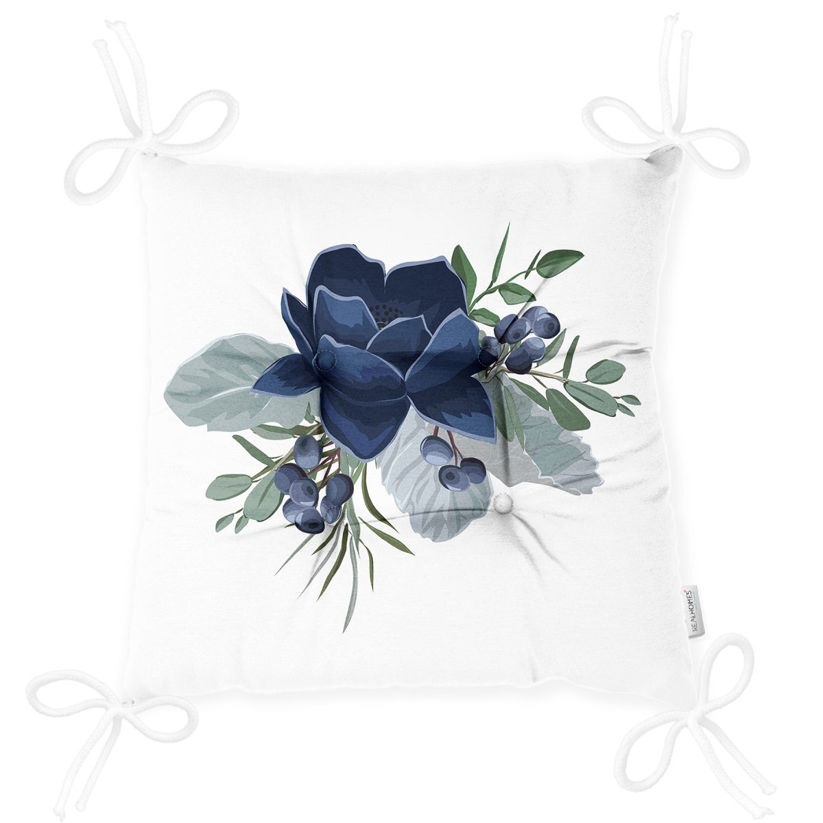 Pastel Mavi Gül Desenli Dijital Baskılı Modern Pofuduk Sandalye Minderi