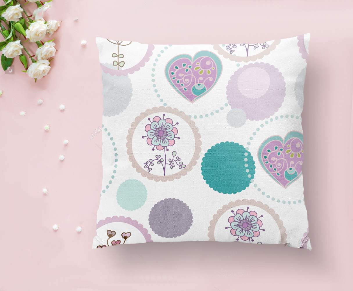 Pastel Rengarenk Yuvarlak Çiçekler Dijital Baskılı Yastık Kırlent Kılıfı Realhomes