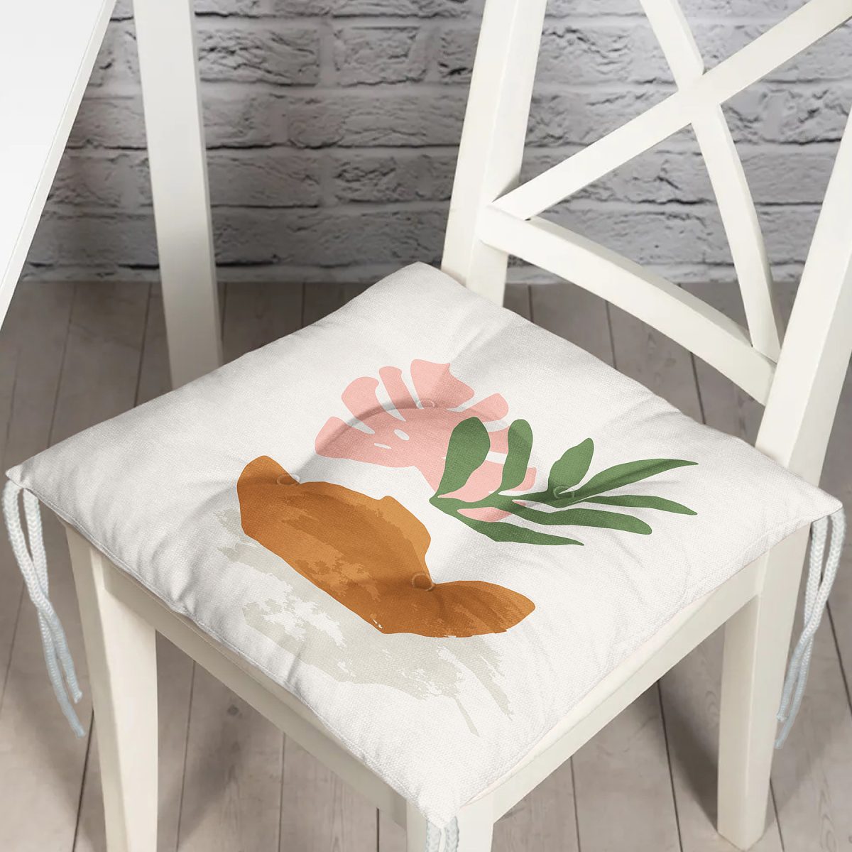 Pastel Renkli Zemin Üzerinde Onedraw Çizimli Dijital Baskılı Modern Pofuduk Sandalye Minderi Realhomes