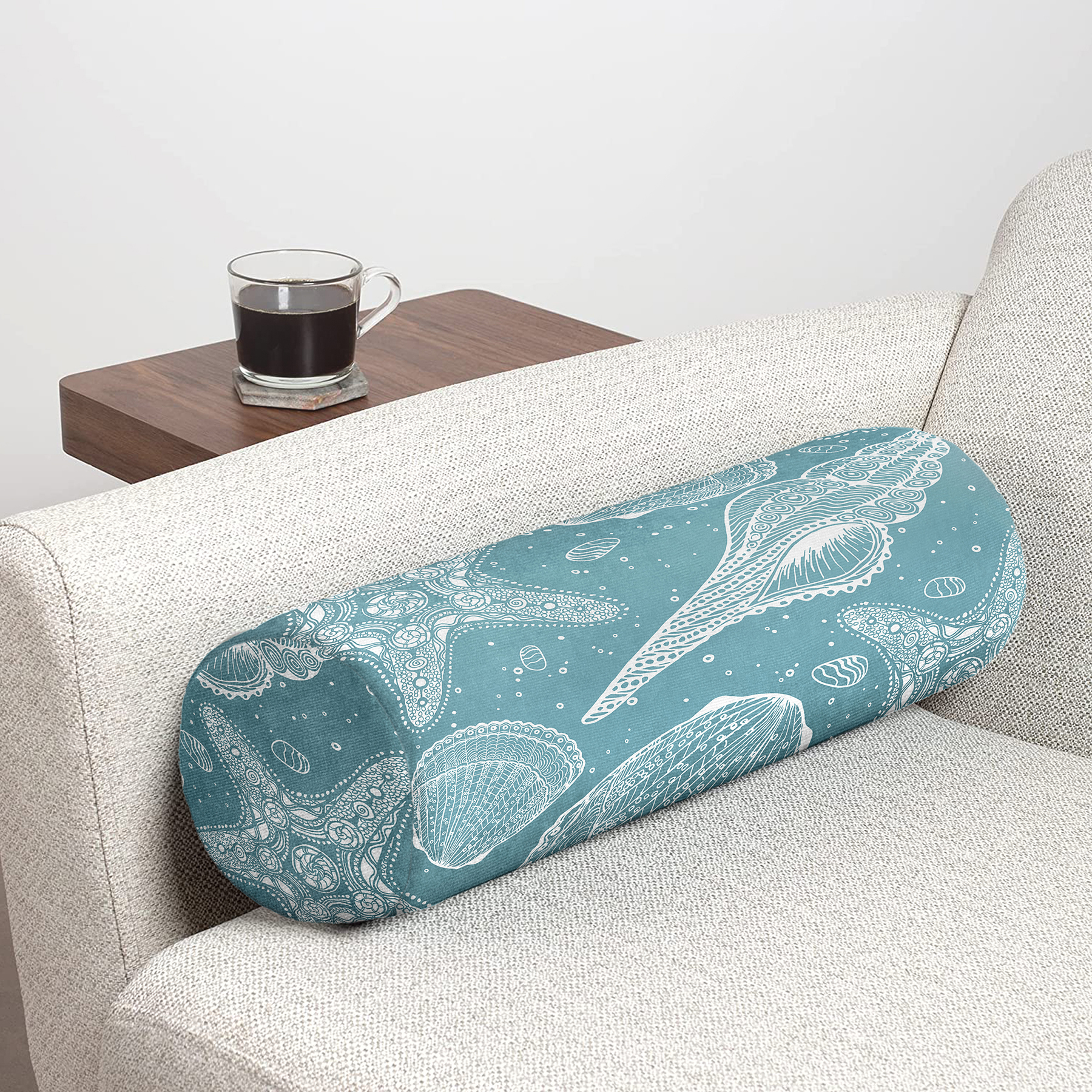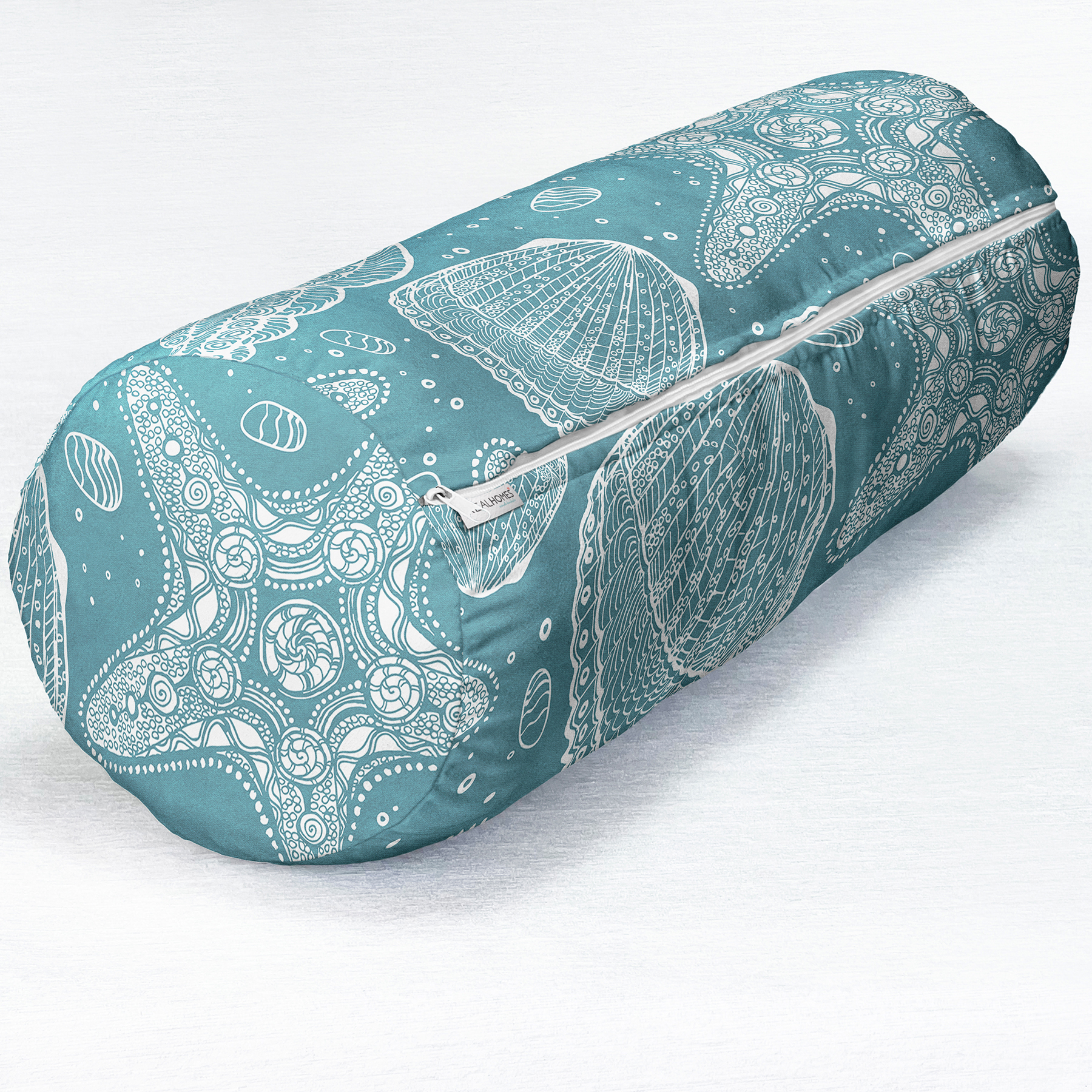 Pastel Zemin Üzerinde Deniz Kabuğu Desenli Dijital Baskılı Modern İç Dolgulu Yumuşak Silindir Form Yastık Kırlent