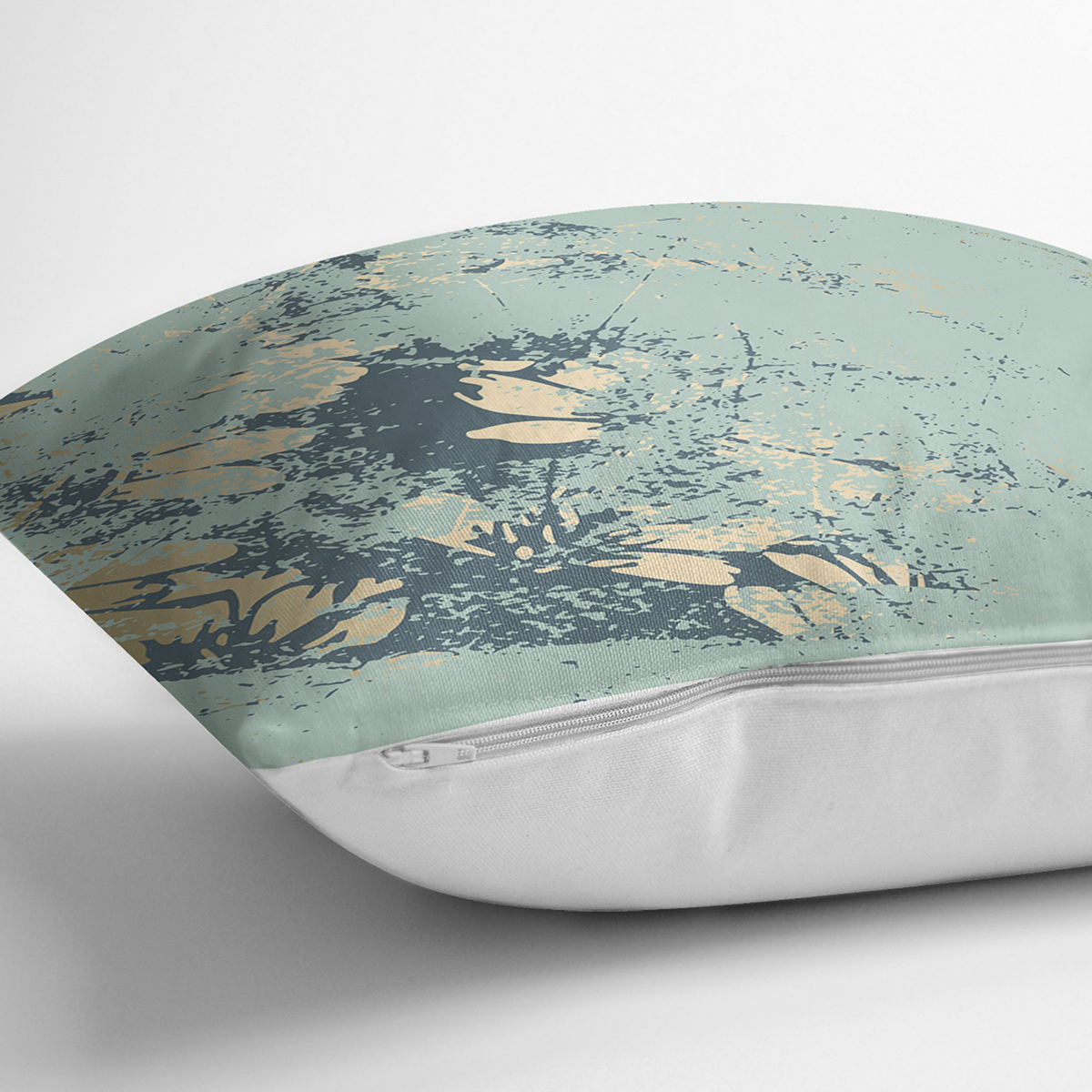 Pastel Zemin Üzerinde Gold Detaylı Yaprak Desenli Modern Yastık Kırlent Kılıfı