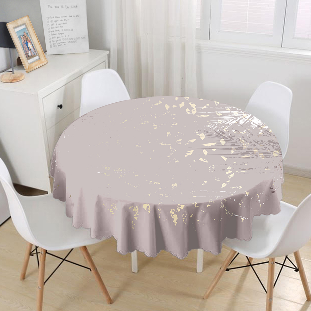 Pastel Zemin Üzerinde Gold Detaylı Yaprak Desenli Modern Yuvarlak Masa Örtüsü – Çap 140cm