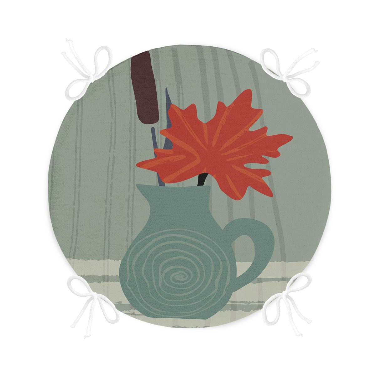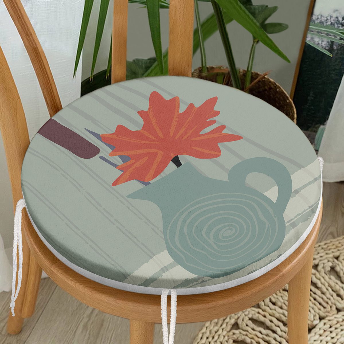 Pastel Zemin Üzerinde Vazo Desenli Dijital Baskılı Modern Yuvarlak Fermuarlı Sandalye Minderi