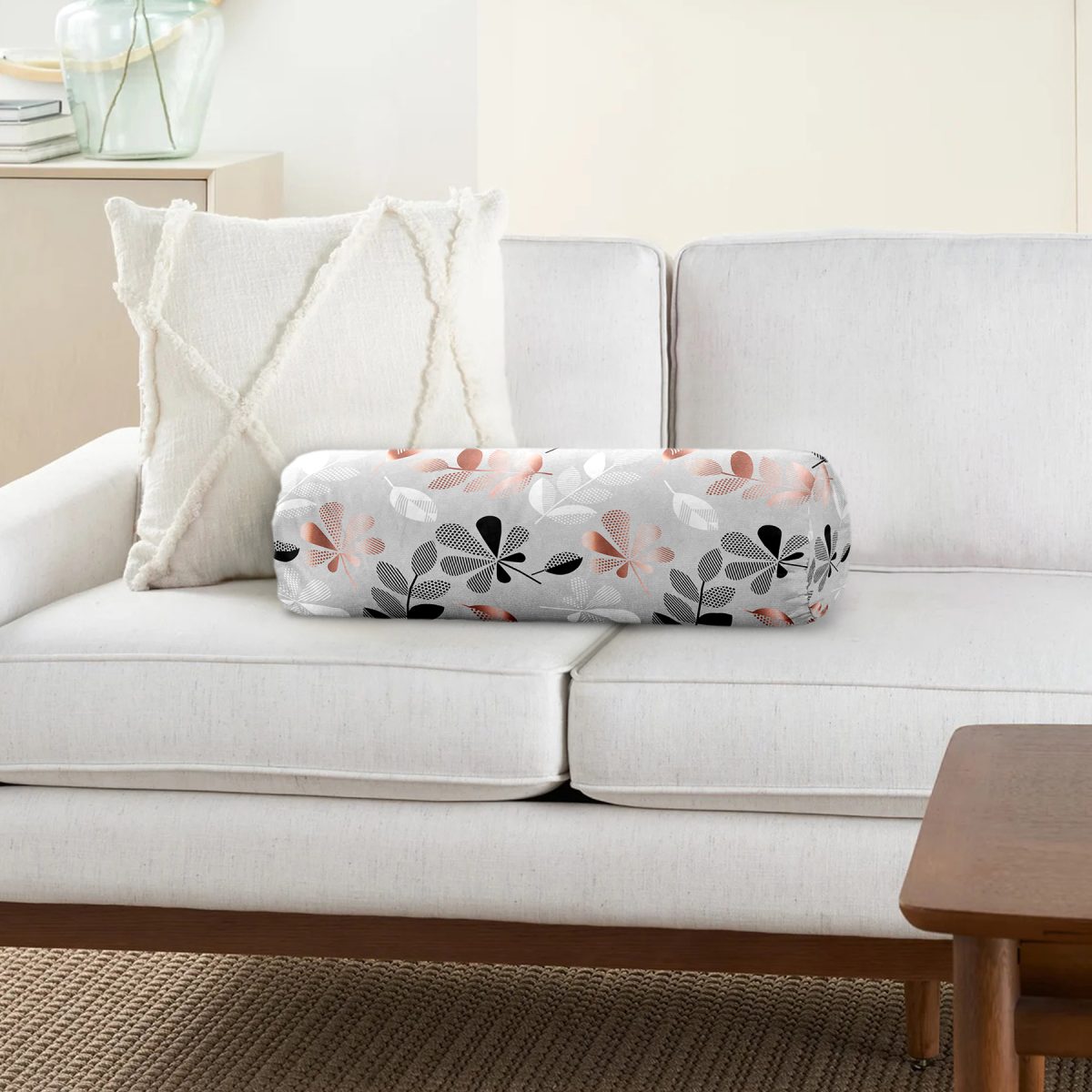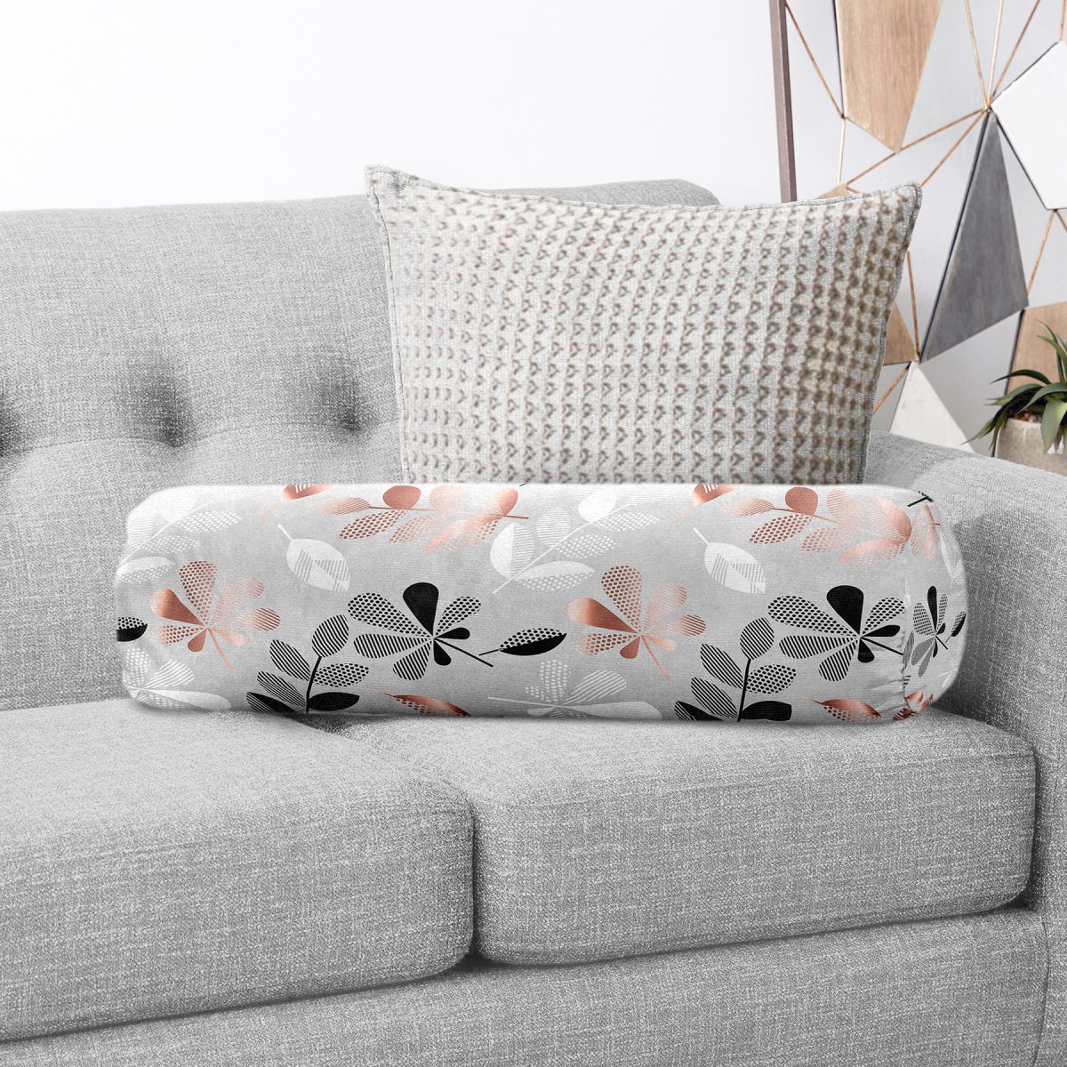 Pastel Zemin Üzerinde Yaprak Desenli Dijital Baskılı Modern İç Dolgulu Süet Silindir Yastık Kırlent – Bel Yastığı