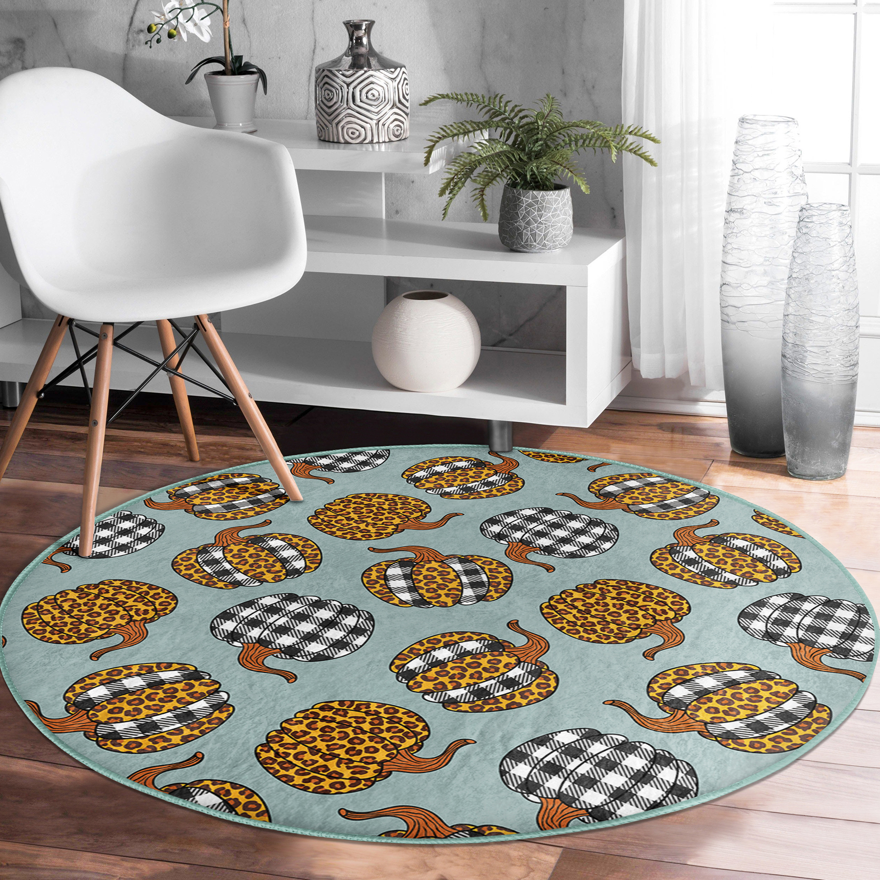 Pastel Zeminde Ekoseli Balkabağı Dijital Baskılı Modern Renkli Koridor ve Antre Yıkanabilir Kaymaz Tabanlı Yuvarlak Halı