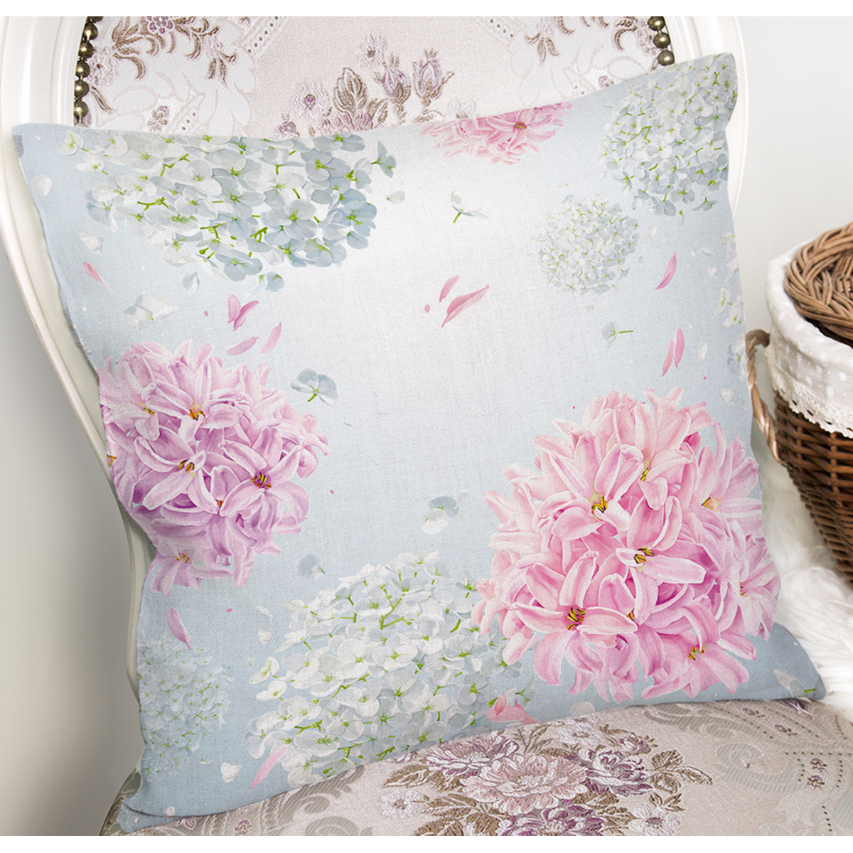 Pastel Zeminli Rengarenk Ortanca Çiçek Dijital Baskılı Modern Yastık Kırlent Kılıfı