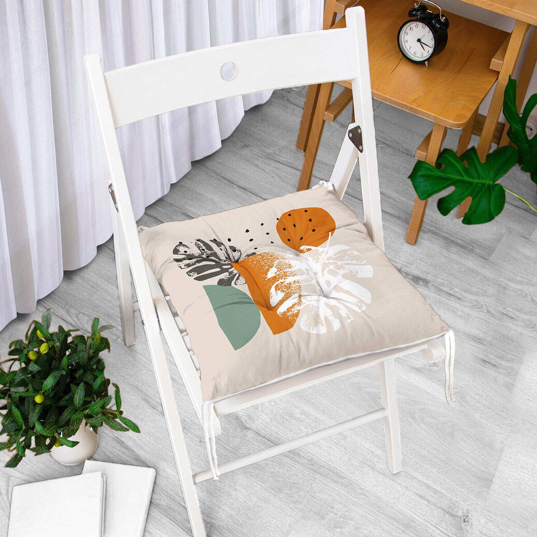 Pastel Zeminli Yaprak Desenli Dijital Baskılı Modern Pofuduk Sandalye Minderi