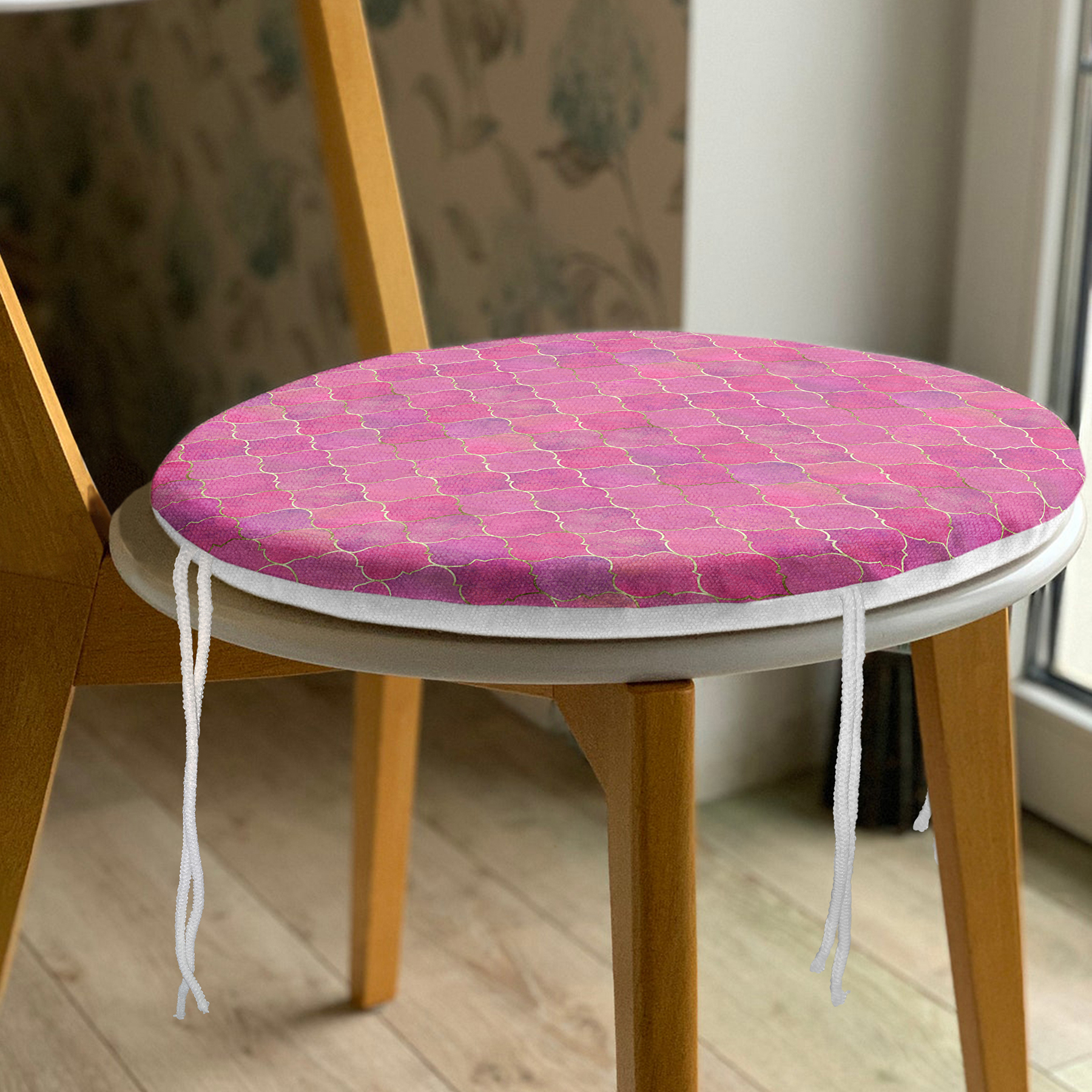 Pembe Altın Varaklı Ogea Desenli Yuvarlak Fermuarlı Sandalye Minderi