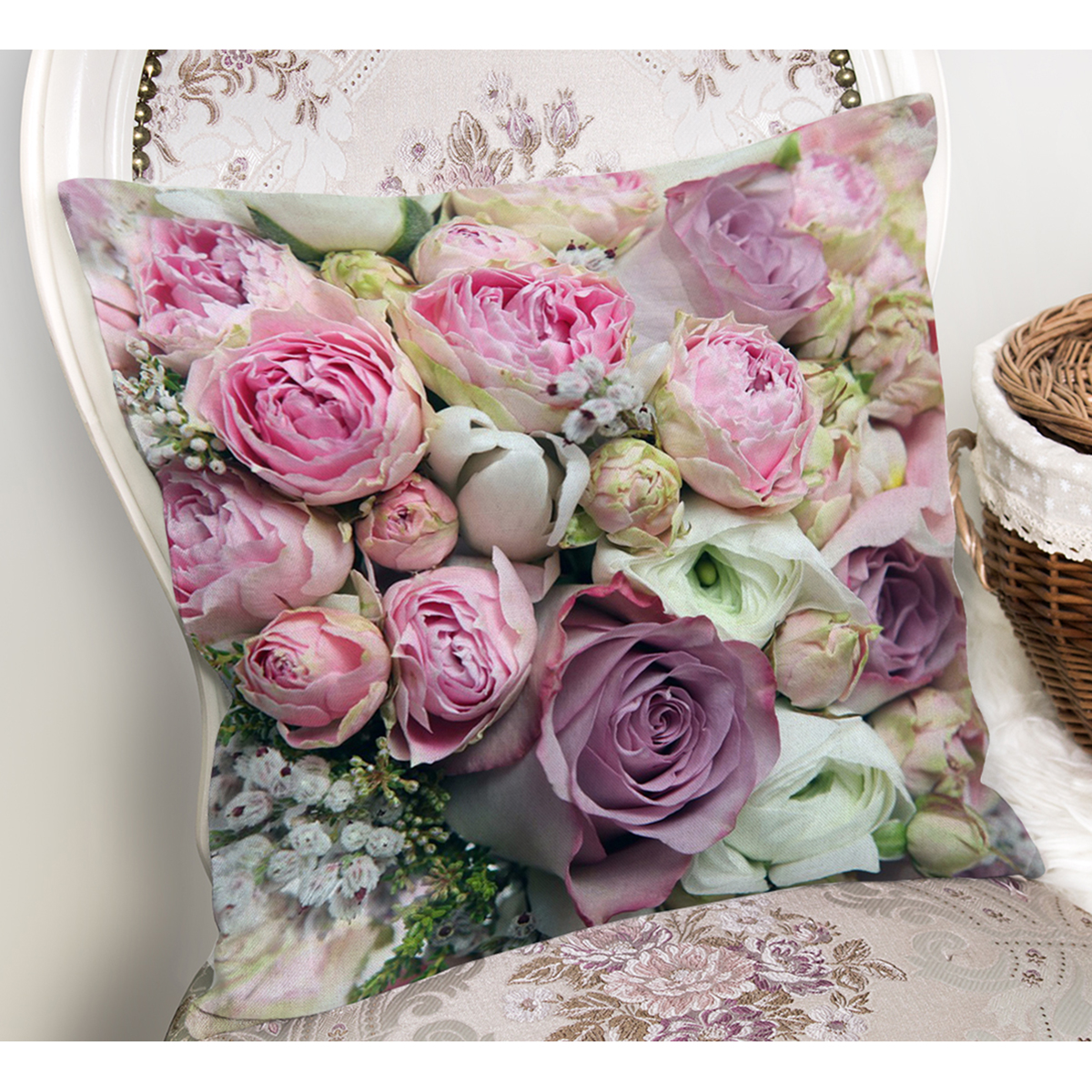 Pembe Güller Dijital Baskılı Dekoratif Yastık Kırlent Kılıfı Realhomes