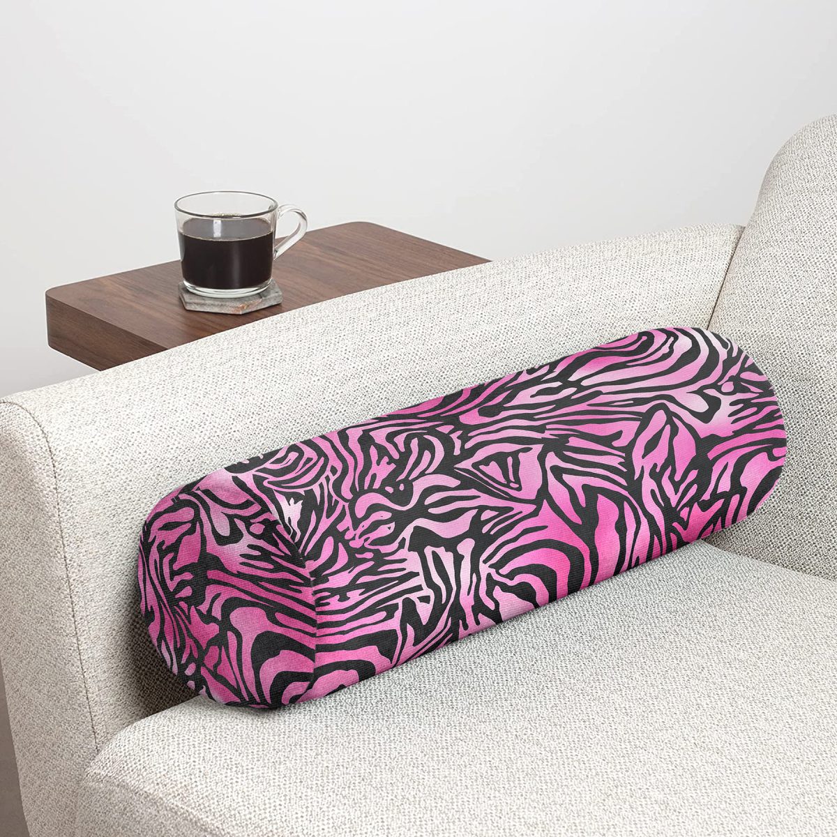 Pembe Kaplan Desenli Özel Tasarım Dijital Baskılı Modern İç Dolgulu – Fermuarlı Süet Silindir Yuvarlak Yastık Kırlent