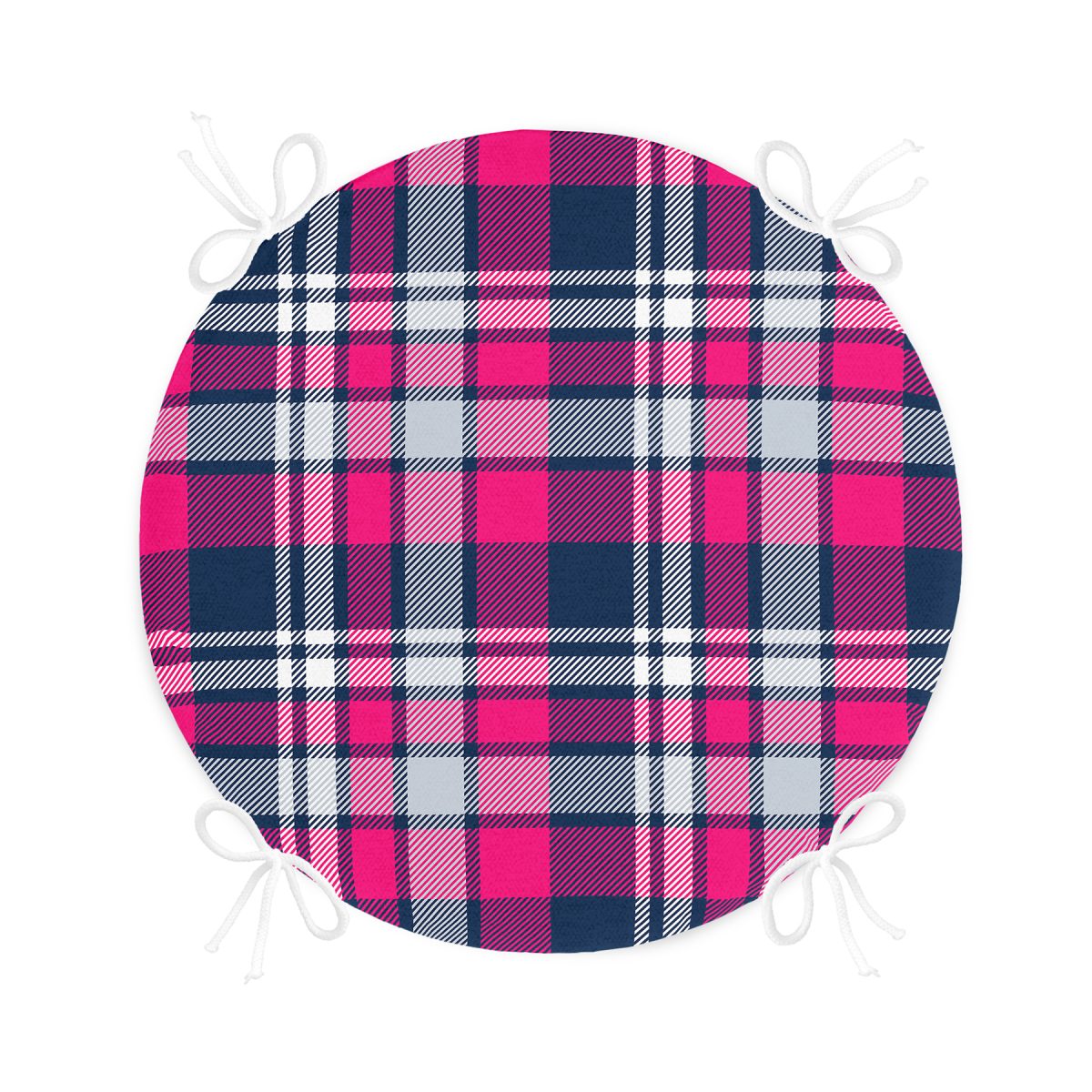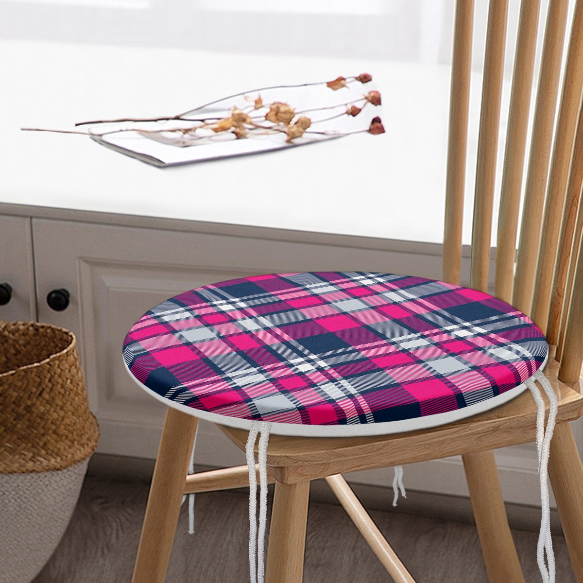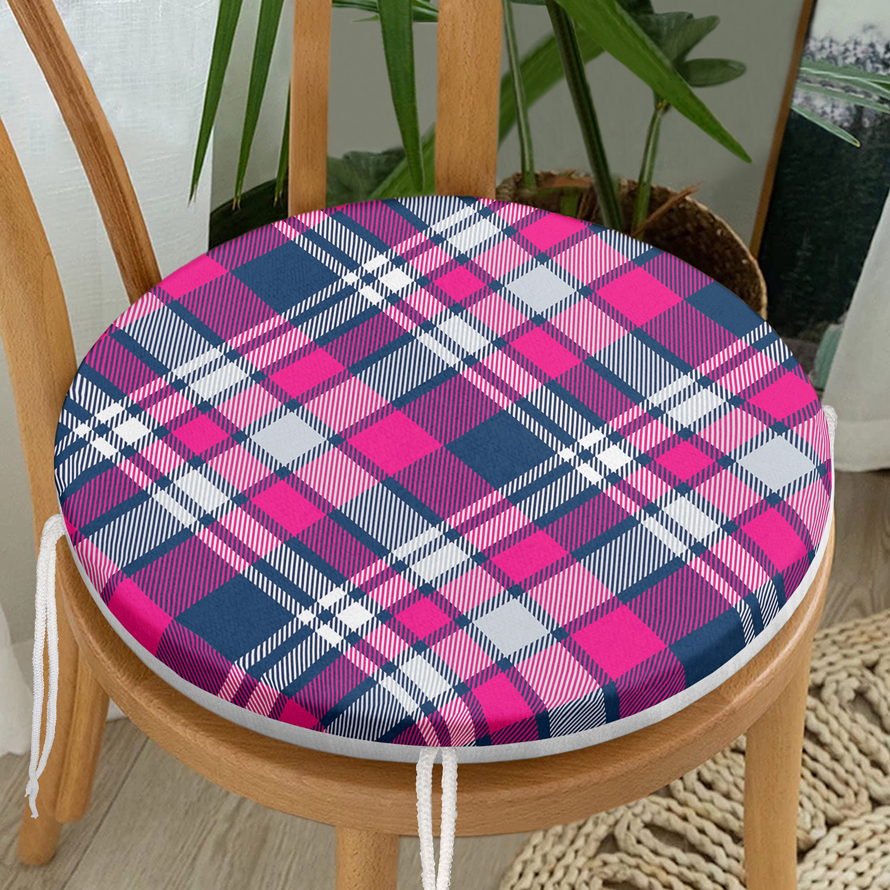 Pembe Lacivert Ekose Desenli Yuvarlak Fermuarlı Sandalye Minderi Realhomes