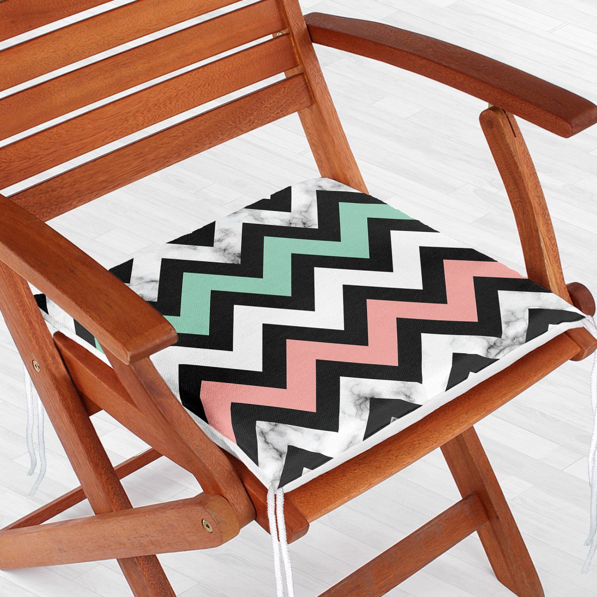 Mermer Zeminli Siyah Geometrik Desenli Modern Fermuarlı Sandalye Minderi Orijinal fiyat: 304,99 ₺.Şu andaki fiyat: 269,99 ₺.