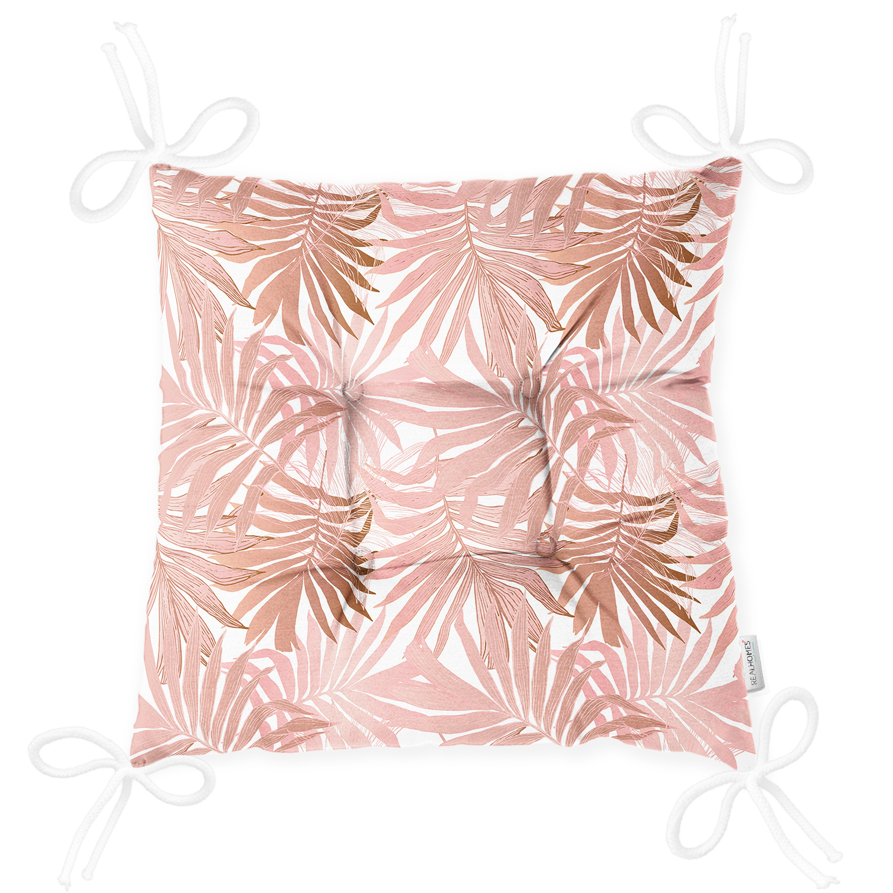 Pembe Tropik Yaprak Motifli Özel Tasarım Dijital Baskılı Pofuduk Sandalye Minderi Realhomes