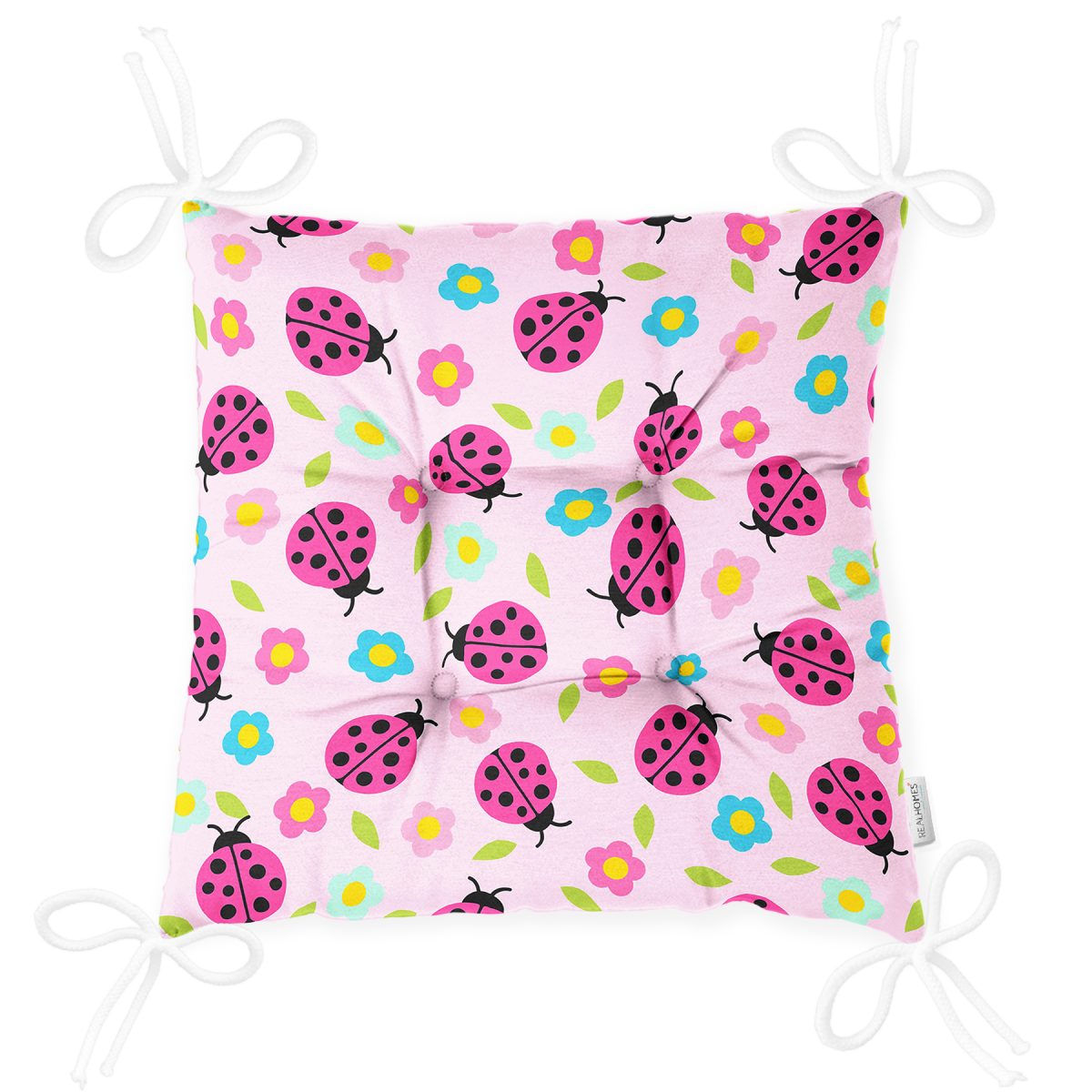 Pembe Uğurböceği Özel Tasarımlı Dijital Baskılı Modern Pofuduk Sandalye Minderi Realhomes
