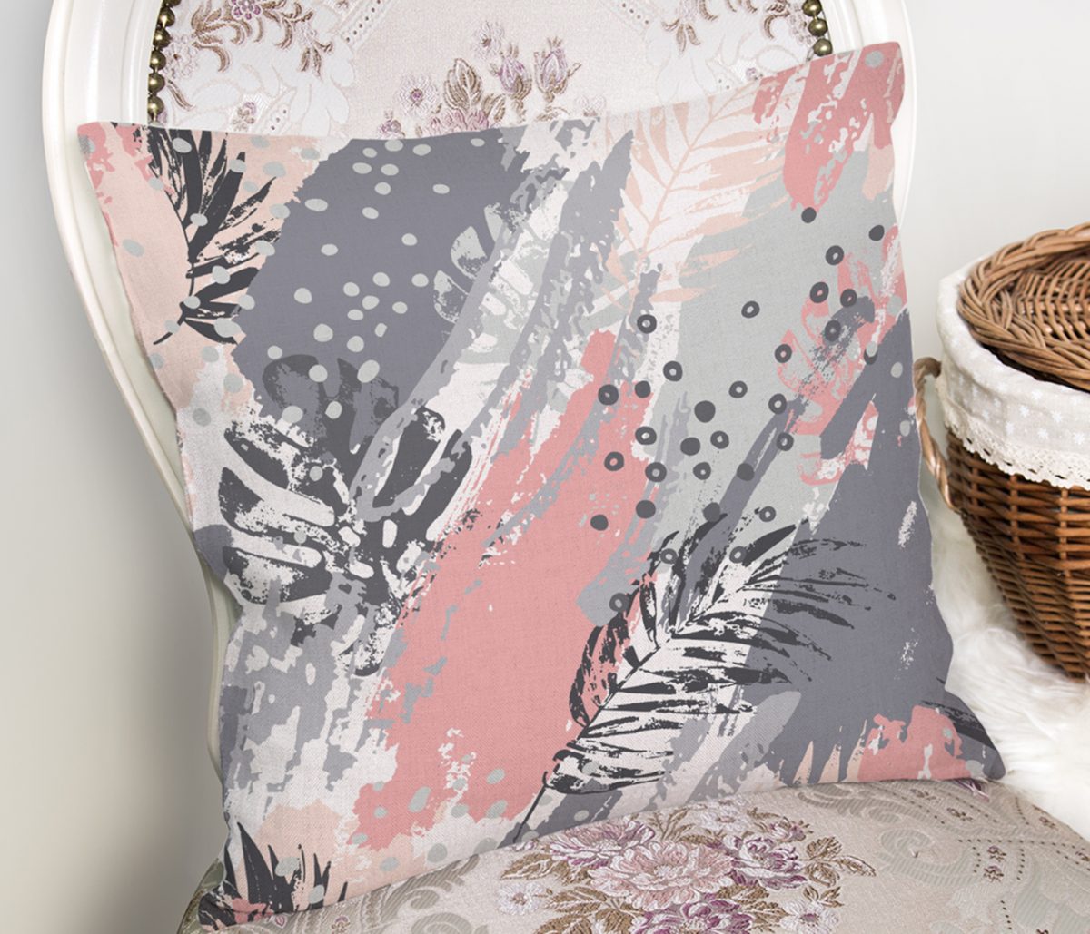 Pembe Ve Gri Ağırlıklı Sulu Boya Yaprak Motifli Yastık Kılıfı Realhomes