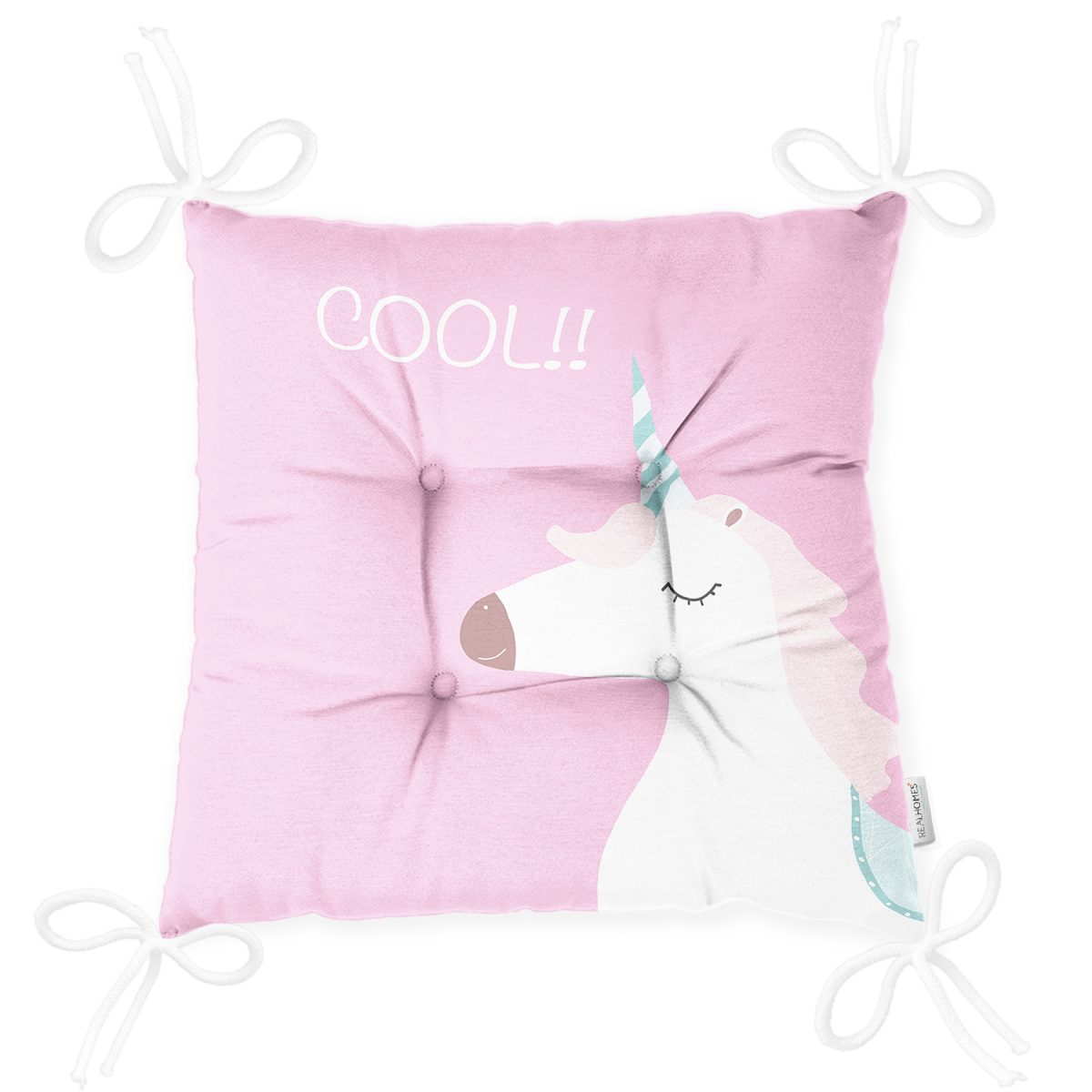 Pembe Zemin Cool Yazılı Unicorn Baskılı Dijital Baskılı Çocuk Odası Pofuduk Sandalye Minderi