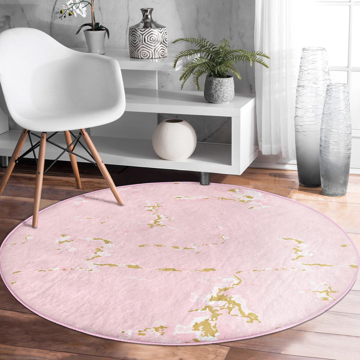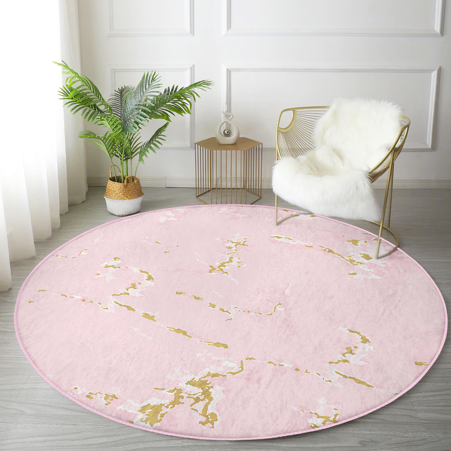 Pembe Zemin Mermer Motifli Dijital Baskılı Modern Yatak Odası Yıkanabilir Kaymaz Tabanlı Yuvarlak Halı