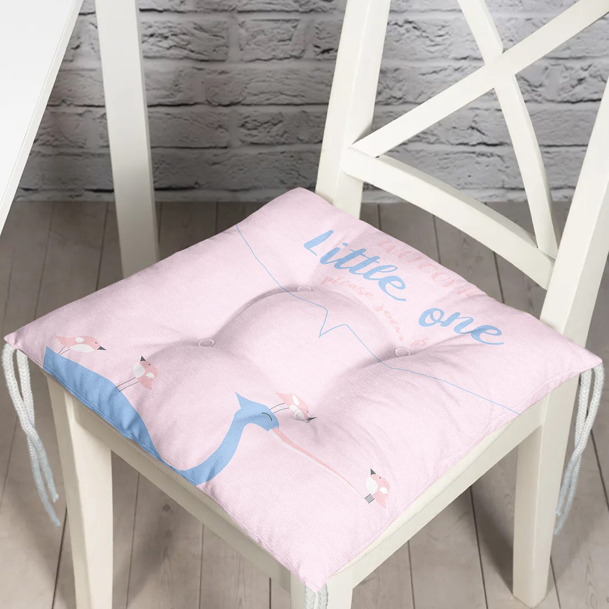 Pembe Zemin Pelikan Ve Kuş Desenli Özel Tasarımlı Dijital Baskılı Çocuk Odası Pofuduk Sandalye Minderi