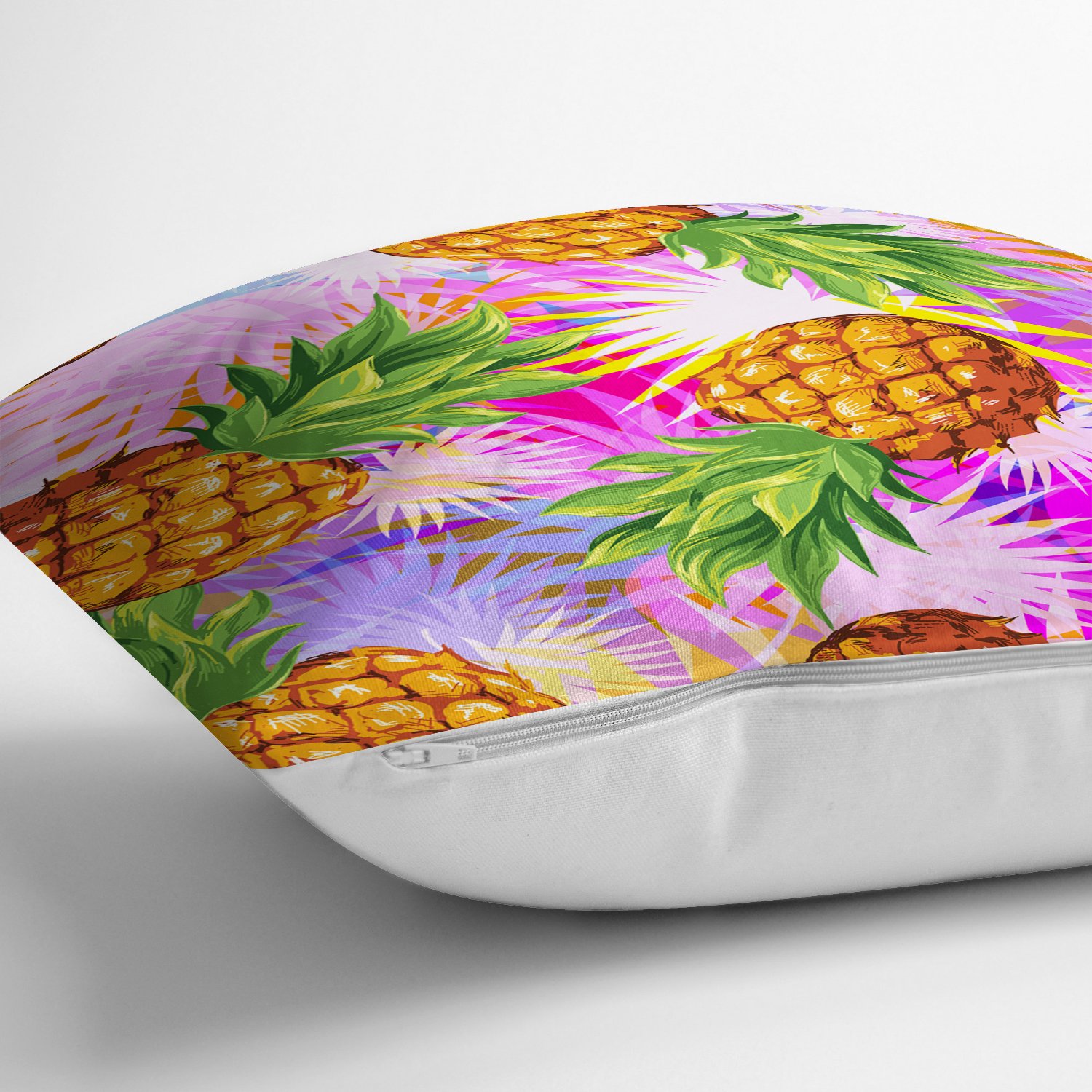 Pembe Zeminde Ananaslar Özel Tasarımlı Modern Yastık Kırlent Kılıfı