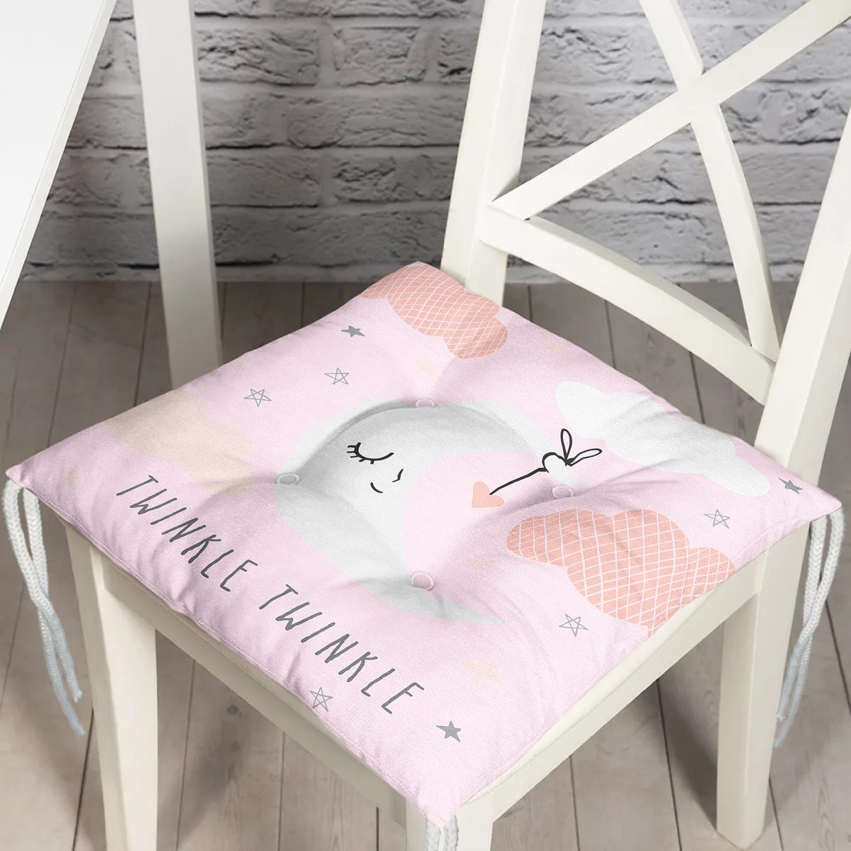 Pembe Zeminde Ay ve Bulut Desenli Bebek Odası Pofuduk Sandalye Minderi Realhomes