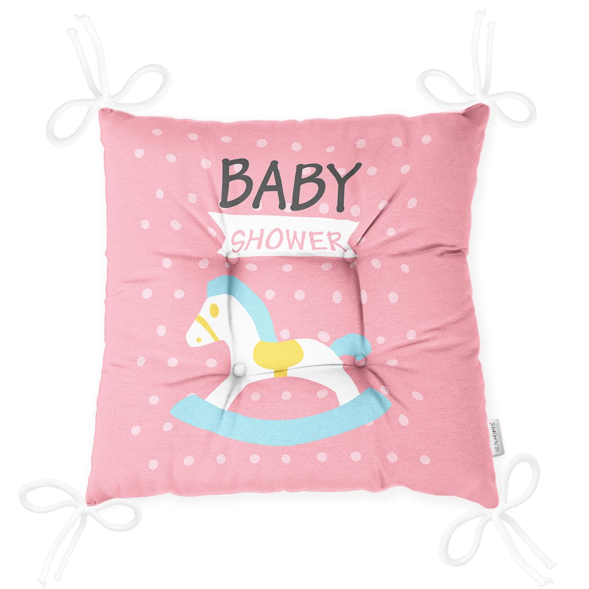 Pembe Zeminde Baby Shower Temalı Desenli Bebek Odası Pofuduk Sandalye Minderi