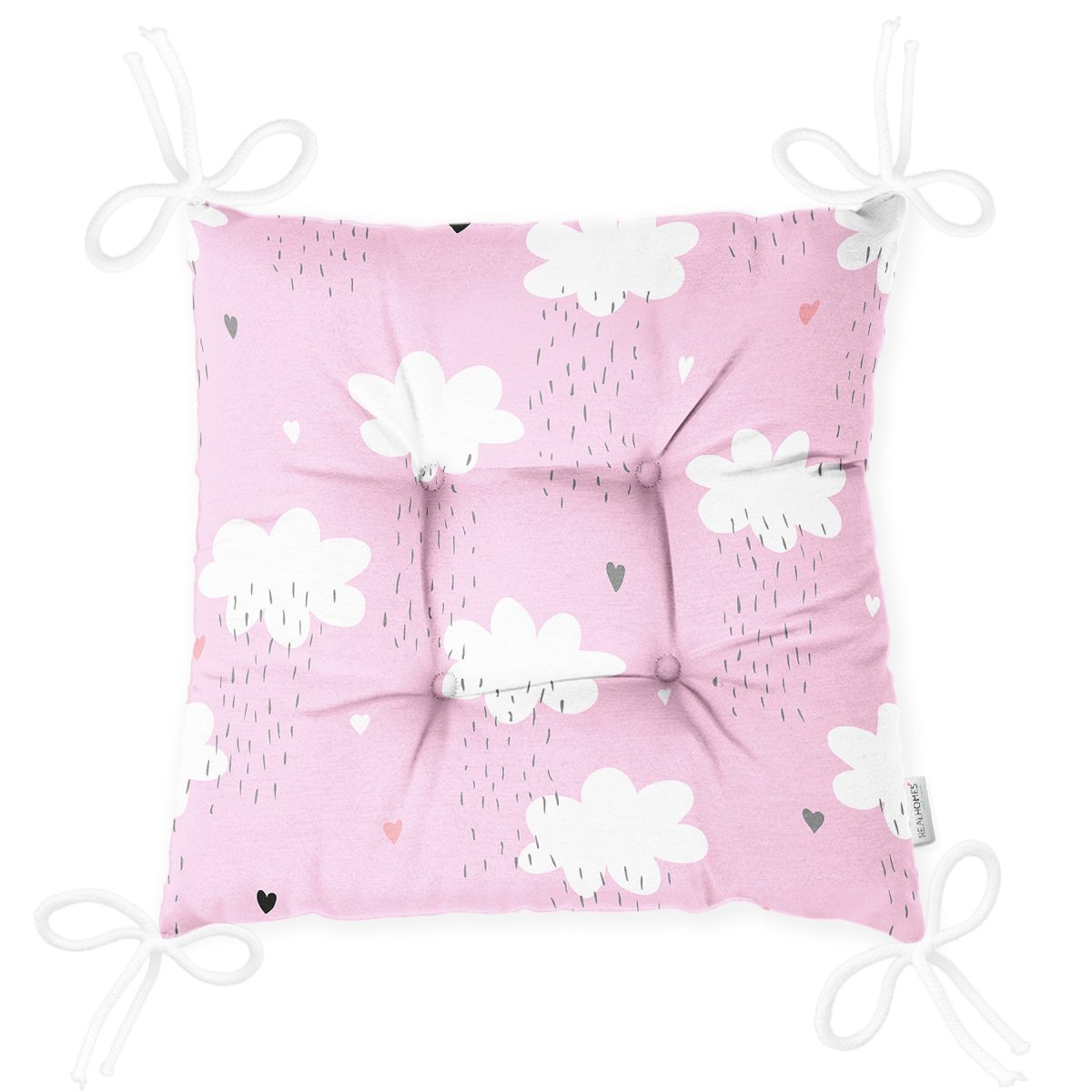 Pembe Zeminde Bulutlar Özel Tasarımlı Çocuk Odası Pofuduk Sandalye Minderi